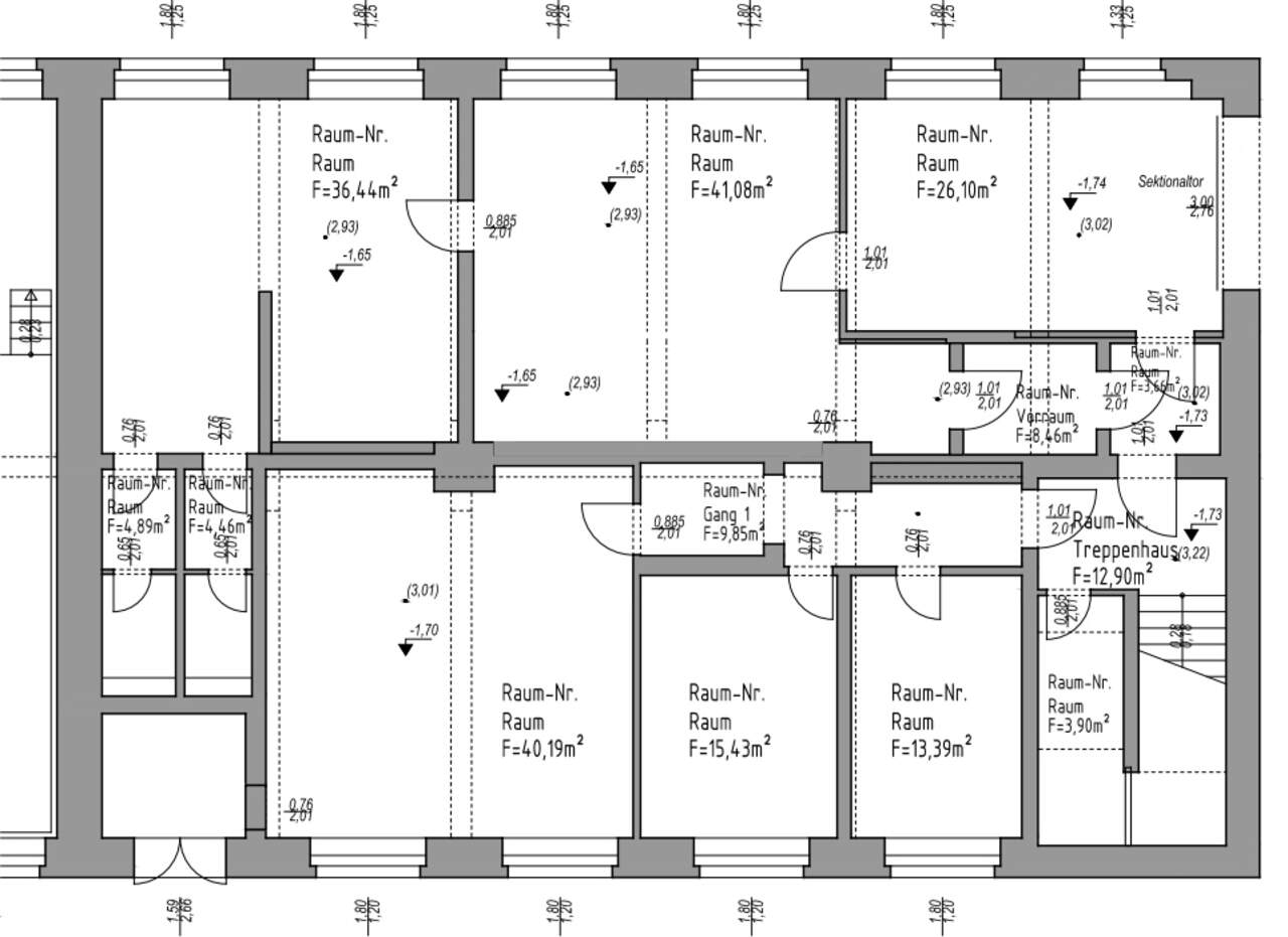 Zur Vermietung steht eine ca. 630 m² große Gewerbefläche, die sich innerhalb eines gepflegten Gewerbeareals befindet und sich auf drei Ebenen mit jeweils ca. 210 m² verteilt. Die Büroflächen im Erdgeschoss sowie im 1. Obergeschoss werden weitesgehend saniert – hierzu zählen Erneuerungen der Elektrik, Sanitär, Bodenbeläge sowie Malerarbeiten. Der Kellerbereich wird lediglich in geringem Umfang überarbeitet, da dieser vorrangig als Lagerfläche vorgesehen ist.