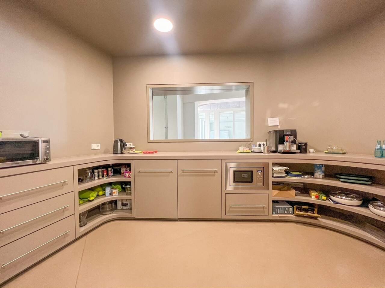 Das Loftähnliche Büro verfügt über einen großzügigen Empfangsbereich mit Loungebereich. Der große offene Bereich wurde durch innenliegende Räume ideal ausgenutzt. So sind hier u.a. eine EInbauküche, ein Druckerbereich sowie die getrenne WC-Anlage untergebracht und trotzdem ist noch genügend Platz für eine Loungeecke für Mitarbeiter und Gäste vorhanden. Weiter zeichnet sich das Büro durch Helle Büroräume mit Glaselementen und Sichtbeton aus. Die hochwertige LED-Beleuchtung (dimmbar) rundet das ganze ab.