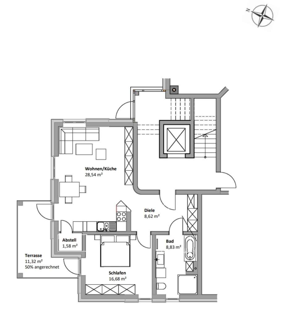 * Abstellraum für jede Wohnung im Dachgeschoss