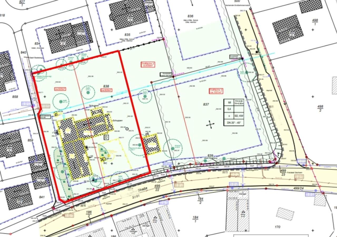 Es ist auch eine Teilung des Gesamtgrundstücks in 2 Teilflächen mit ca. 827 m² möglich.