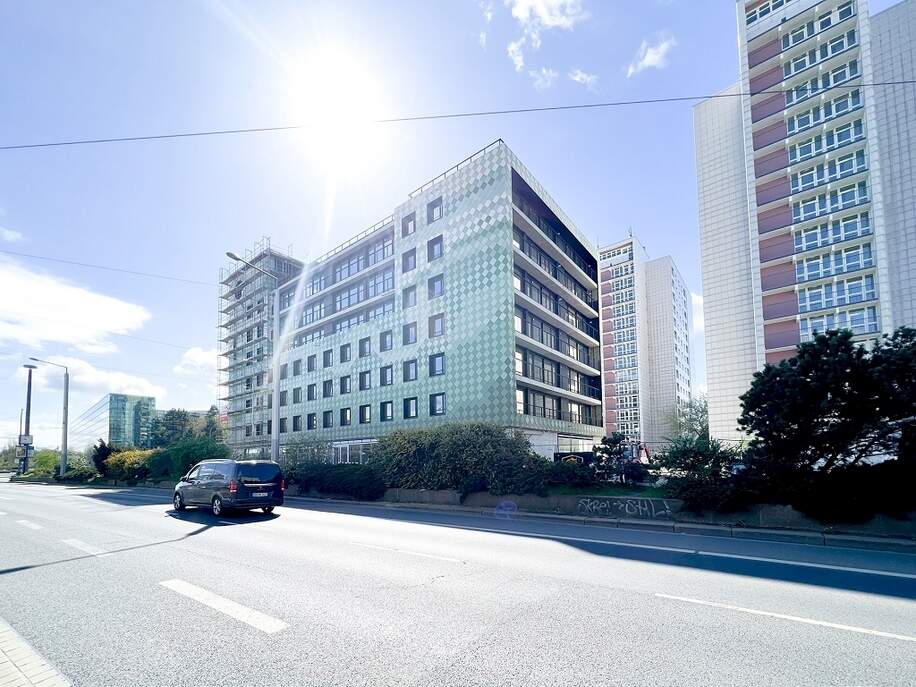 Die Immobilie entsteht im Dresdner Stadtteil Pirnaische Vorstadt, direkt an einem sehr frequentierten Kreuzungsbereich namens Straßburger Platz, nahe der Innenstadt.