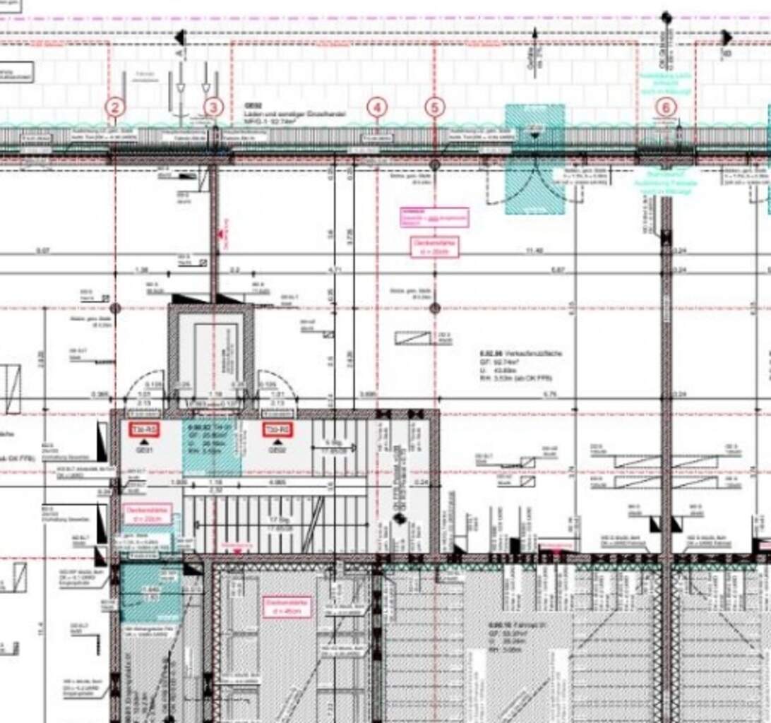 Zur Vermietung steht eine ca. 93 m² große Gewerbefläche, die im Erdgeschoss eines im Bau befindlichen Wohn- und Geschäftshauses entsteht. In den oberen Etagen entstehen ca. 3.700 m² Wohnfläche (52 Wohnungen) und im Erdgeschoss ca. 490 m² Gewerbefläche ( 4 Gewerbeflächen).