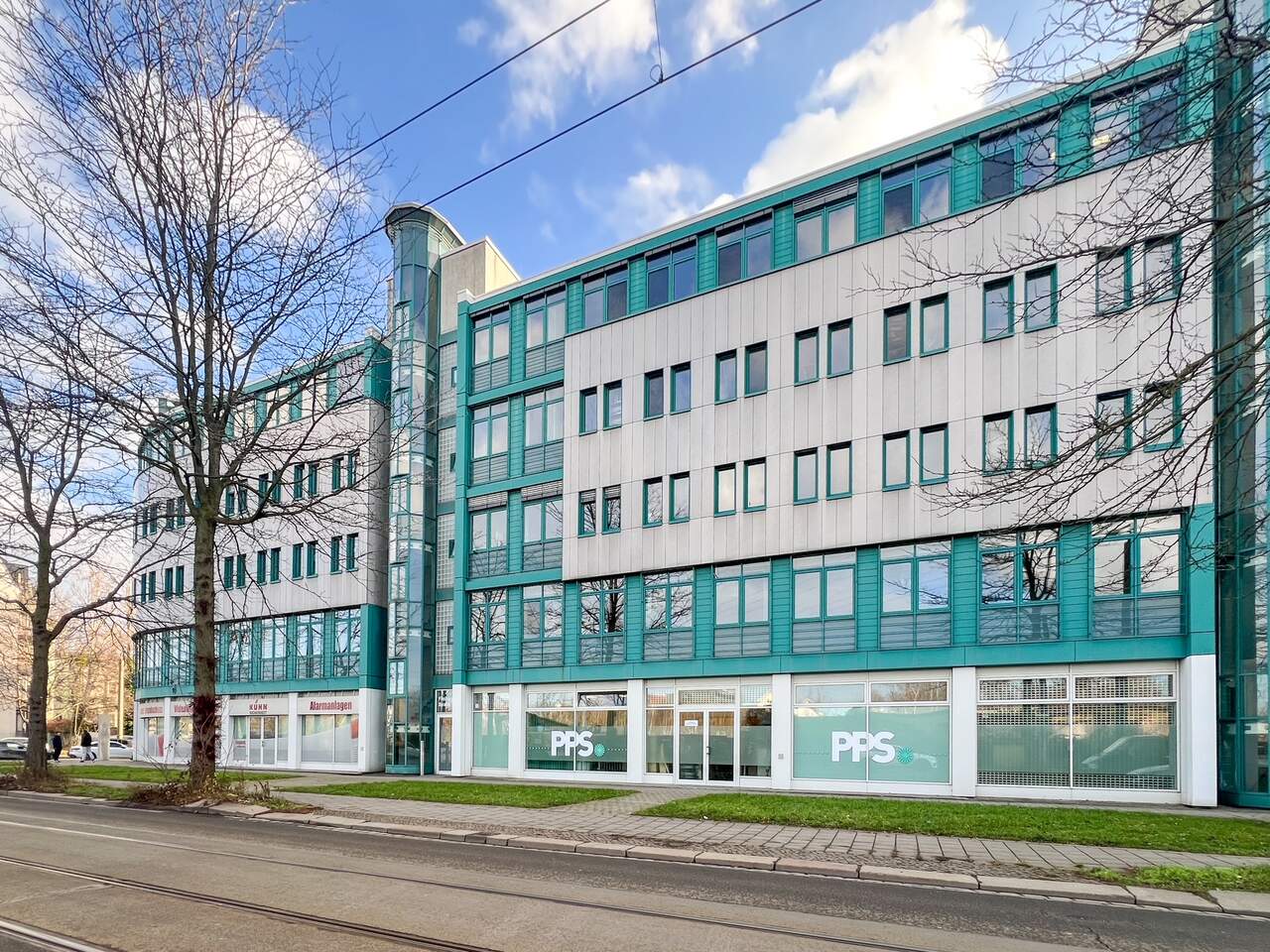 Die Immobilie ist ein voll vermietetes Geschäftshaus bestehen aus 2 Gebäudeteilen (Vorder- und Hinterhaus) mit Ladenflächen im Erdgeschossbereich und Büroflächen in den oberen Etagen. Zu den langjährigen Mietern zählen u.a. IT-Unternehmen, Ingenieurbüros, Bildungsträger, Dienstleister und ein Sportstudio. Im Kellergesschoss befindet sich die hauseigene Tiefgarage. Ein Personenaufzug verbindet die einzelnen Etagen.
