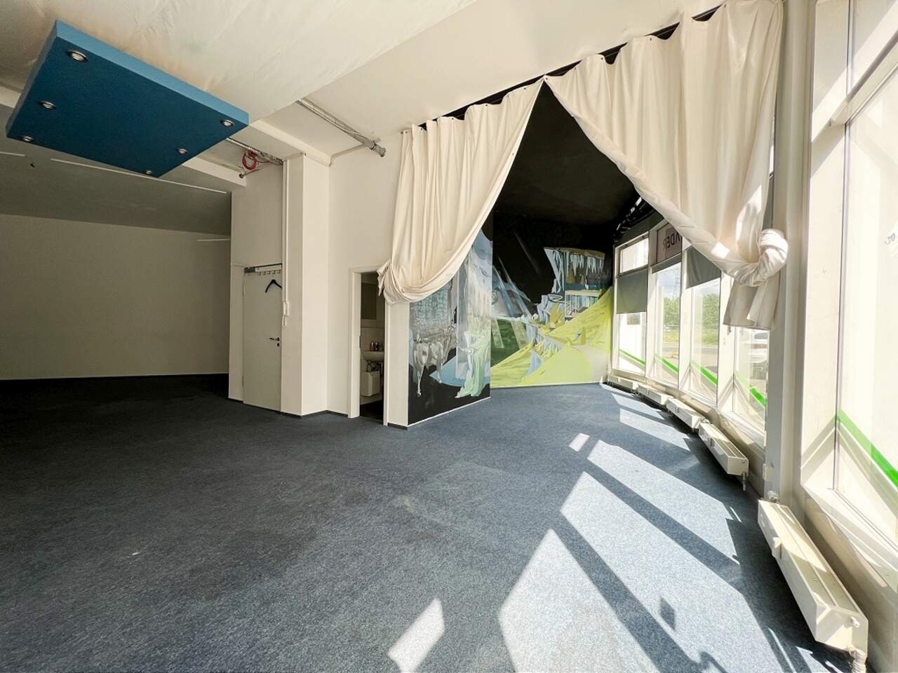Zur Vermietung steht eine ca. 88 m² große Gewerbefläche, die sich im Erdgeschoss eines Bürohauses befindet. Es bieten sich für diese Mietfläche verschiedene Nutzungen an (Büro, Dienstleistung, Ausstellung, Laden,...).