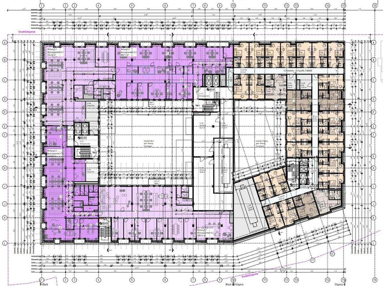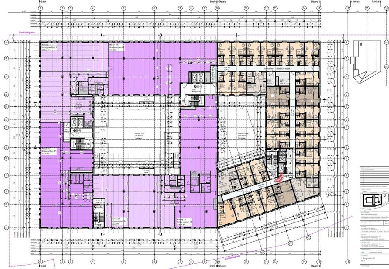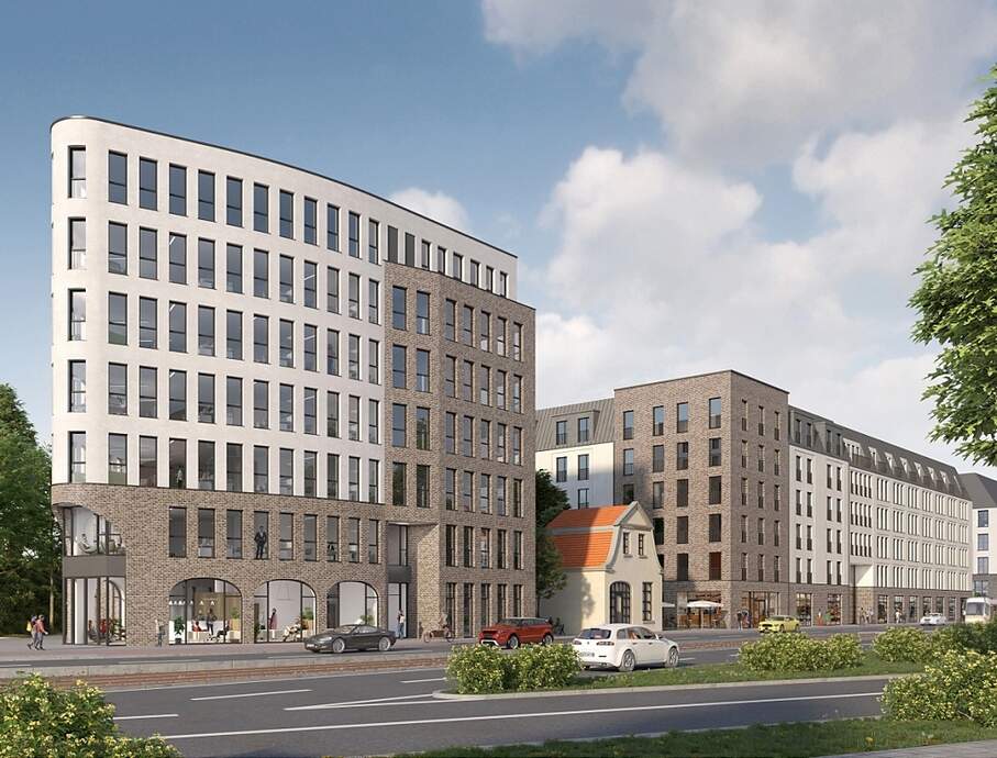 Im südlichen Grundstücksteil entsteht das Solitärgebäude mit ca. 3.380 m² Bürofläche, die bereits vermietet ist. Auf dem nördlichen Grundstücksteil entsteht ein Blockgebäude, das sich in die Nutzungsarten Serviced Apartments auf ca. 5.240 m² und Büro auf ca. 9.120 m² Mietfläche aufteilt. Im Erdgeschoss des Blockgebäudes befinden sich eine Handels- und eine Gewerbefläche mit zusammen ca. 1.890 m² Mietfläche. Die Fläche der Serviced Apartments sowie die Handelsfläche im Erdgeschoss sind bereits langfristig vermietet.