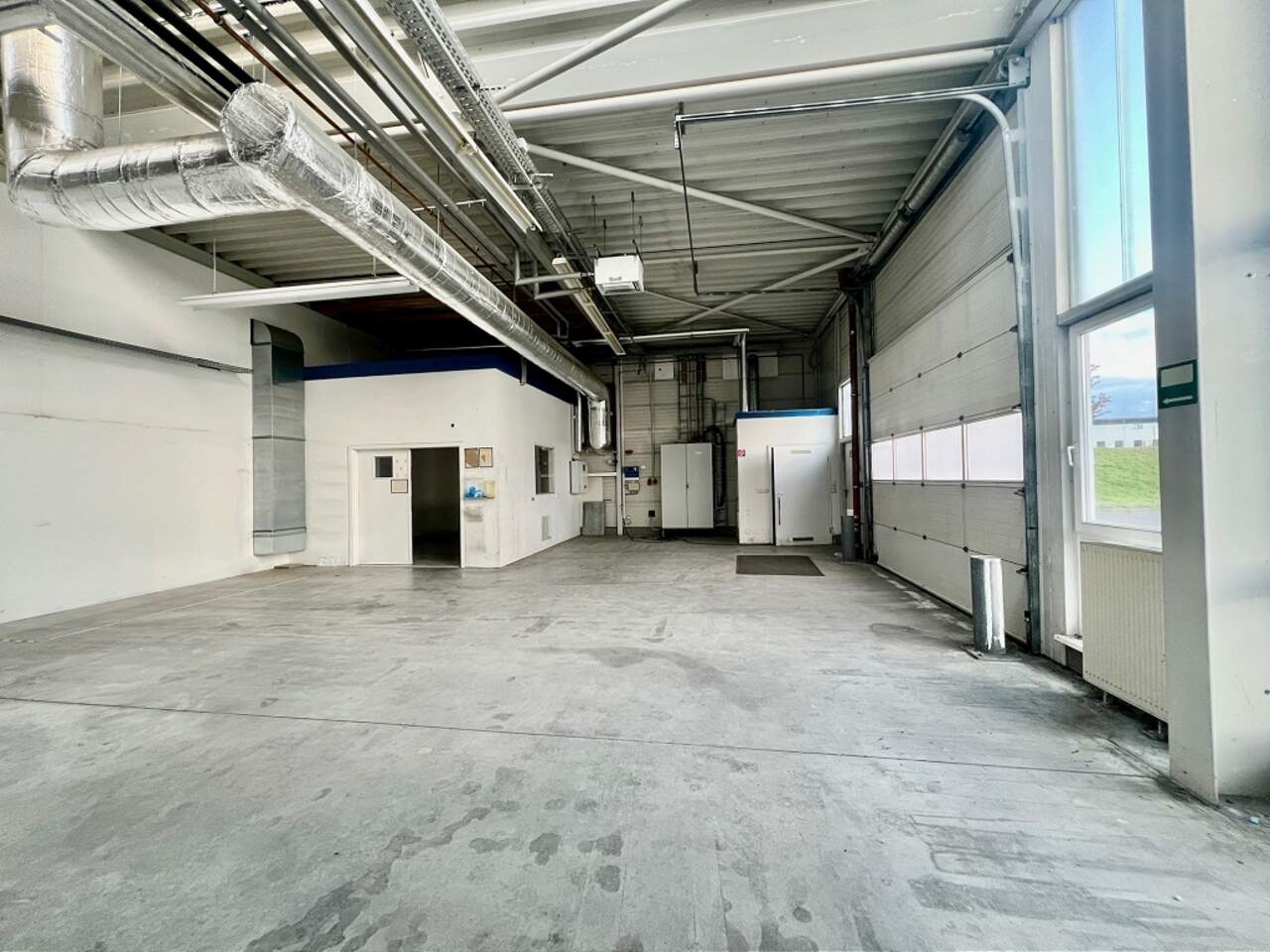 Zur Vermietung steht eine ca. 973 m² große Hallenfläche, welche über zwei Sektionaltore ebenerdig befahrbar ist. Zusätzlich zur Halle stehen rund 1.000 m² befestigte Freifläche (Betriebshof). Für einen erhöhten Flächenbedarf kann in Abstimmung mit dem Eigentümer der Neubau einer ca. 1.000 m² Halle im unteren Grundstücksteil (aktuell Wiese) erfolgen.
