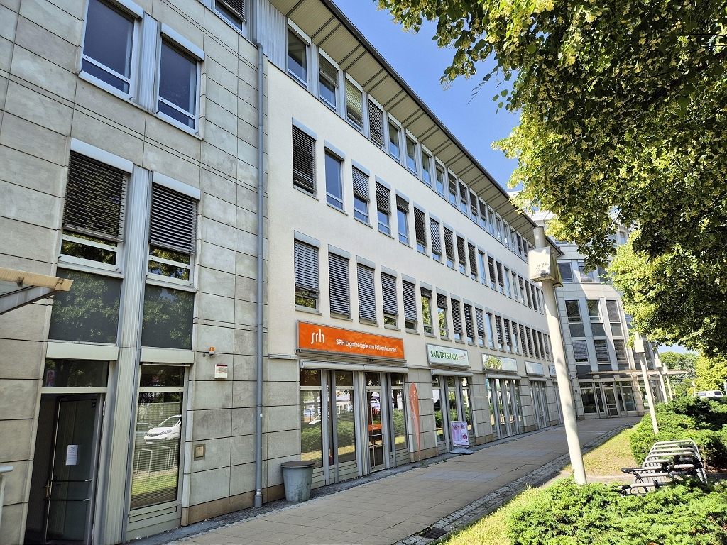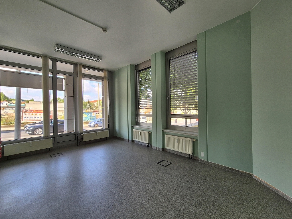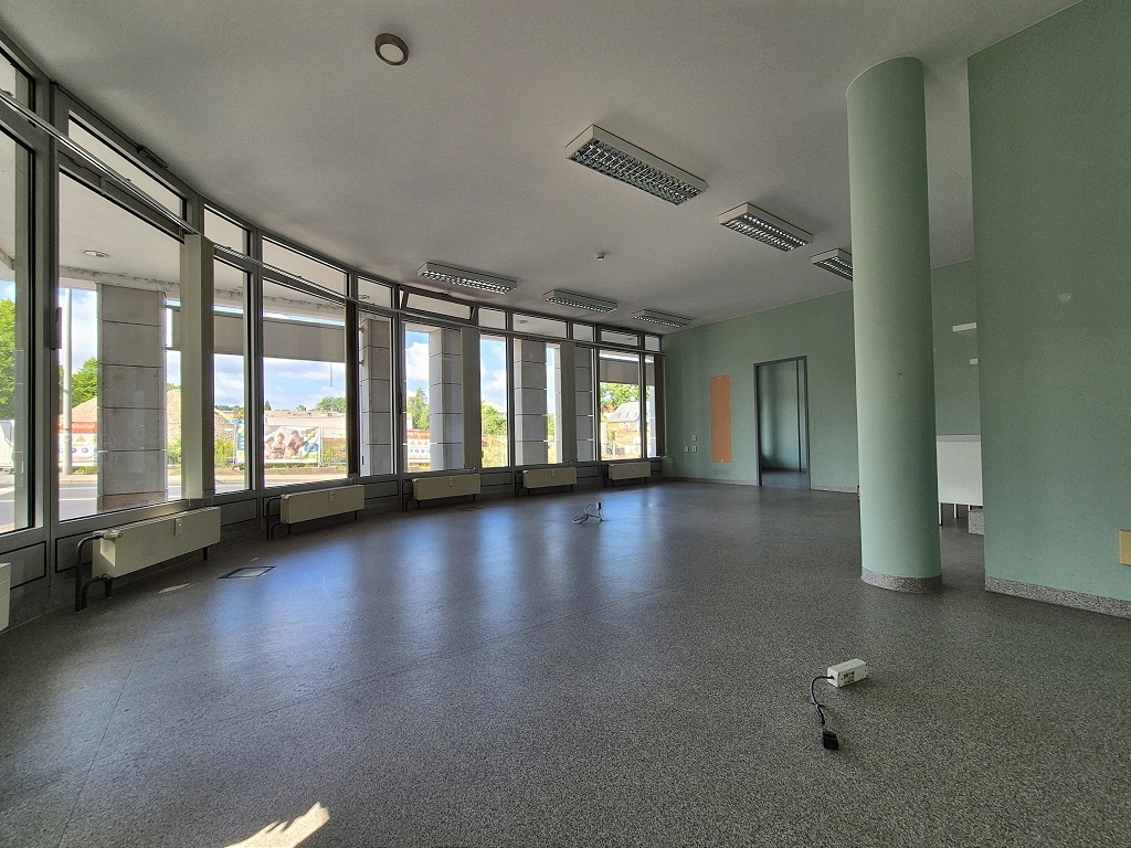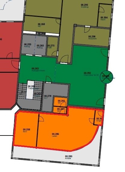 Zur Vermietung steht ein ca. 78 m² großer Eckladen, der sich im Erdgeschoss eines Bürokomplex befindet. Die oberen Etagen sind als Büroflächen vermietet.