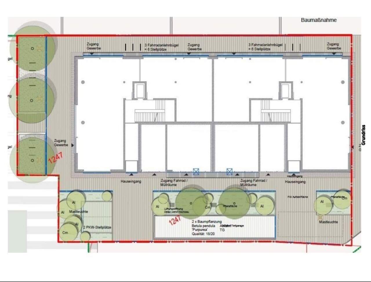Zur Vermietung steht eine bis zu ca. 476 m² große Gewerbefläche, die im Erdgeschoss eines im Bau befindlichen Wohn- und Geschäftshauses entsteht. In den oberen Etagen entstehen ca. 3.700 m² Wohnfläche (52 Wohnungen) und im Erdgeschoss ca. 490 m² Gewerbefläche ( 4 Gewerbeflächen).