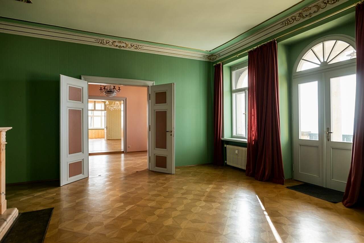 Zur Verkauf steht eine ca. 360 m² große und exklusive 9 Raumwohnung, die sich im Erdgeschoss einer repräsentativen und denkmalgeschützten Villa in den Weinbergen von Radebeul befindet. Auf einem ca. 17.059 m² großen Grundstück erstreckt sich der " Landsitz Schloss Wettinhöhe". In den Jahren 1998 bis 2000 wurde die gesamte Immobilie aufwendig restauriert. Der Garten und der Park mit Zufahrtsallee gelten als Werk der Landschafts- und Gartengestaltung und liegen im naturbelassenen Denkmalschutzgebiet "Historische Weinberglandschaft Radebeul" und bieten den Mietern zudem Parkmöglichkeiten.