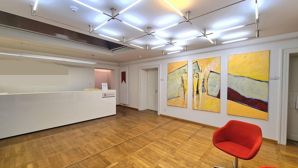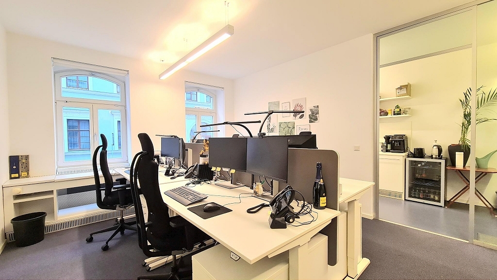 Zur Vermietung steht eine ca. 110 m² repräsentative Bürofläche, die sich im Erdgeschoss eines hochwertig sanierten Bürohauses befindet. Das im Jahr 1844 errichtete und 2006 sanierte Gebäude, besticht - neben seiner Lage im historischen Barockviertel - durch moderne und strukturierte Innenarchitektur.