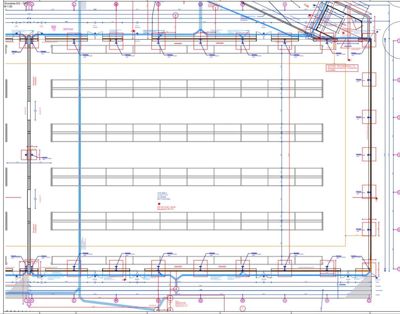 - Decke: Stahlträger, Trapezblech, gedämmt, nicht brennbar