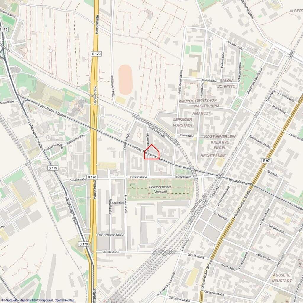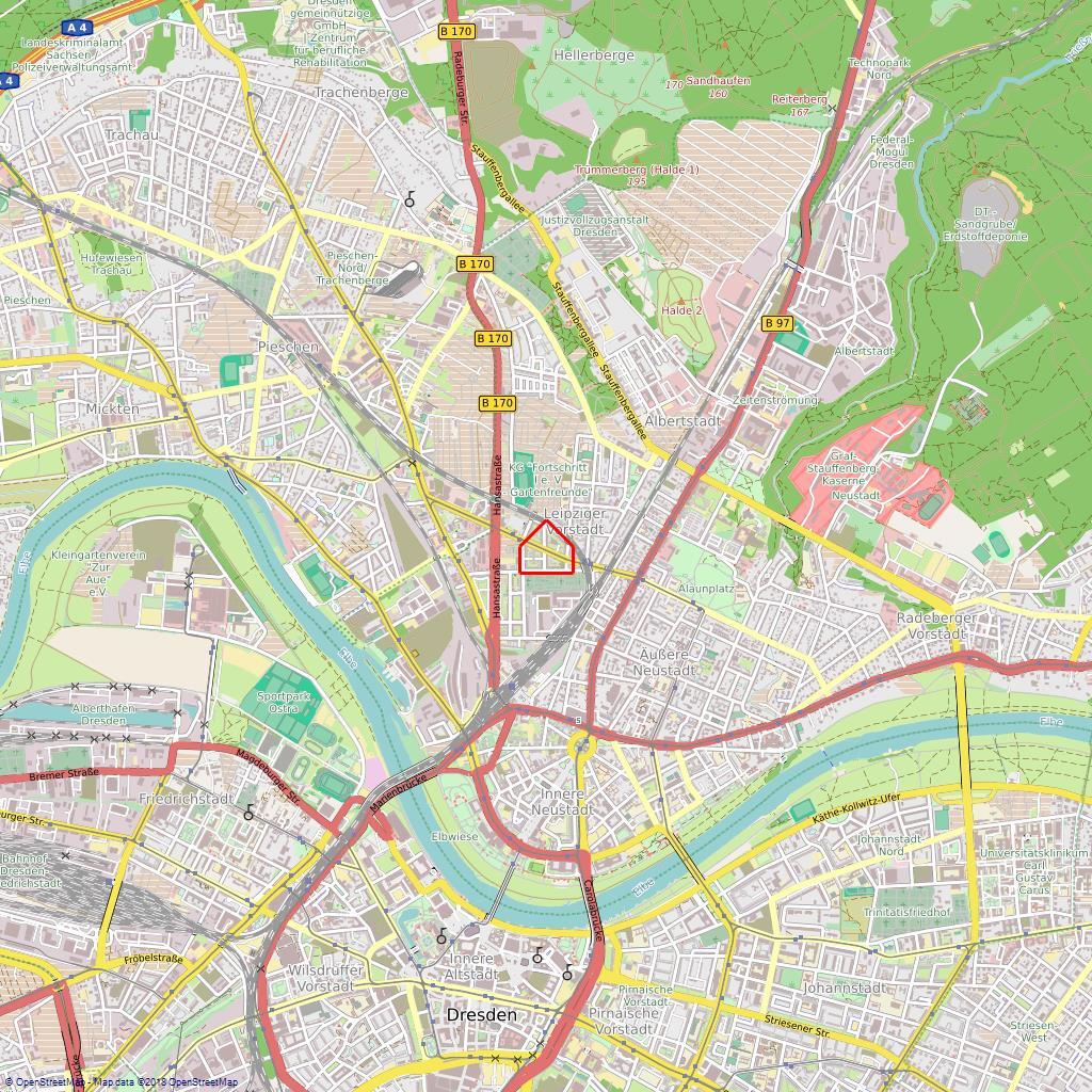 Die Immobilie liegt im Ortsamtsbereich Neustadt zu dem die Stadtteile Innere Neustadt, die Leipziger Vorstadt mit dem Hechtviertel, die Äußere Neustadt, bestehend aus Antonstadt und Radeberger Vorstadt sowie die Albertstadt gehören. Nach dem Stadtbrand 1685 wurde dieser Teil auf verändertem Grundriss planmäßig wieder aufgebaut und erhielt daher seinen Namen Neustadt. Im östlichen Teil der Neustadt liegt das "Preußische Viertel", welche auf Grund seiner Villenbebauung ein beliebter Ortteil wurde. Dieser Stadtteil überzeugt vor allem durch die Nähe zur Elbe und zur Dresdner Heide mit seinen Erholungsmöglichkeiten sowie durch die geringe Entfernung zum Stadtzentrum und zur Bundesautobahn A4, Anschlussstelle Hellerau.