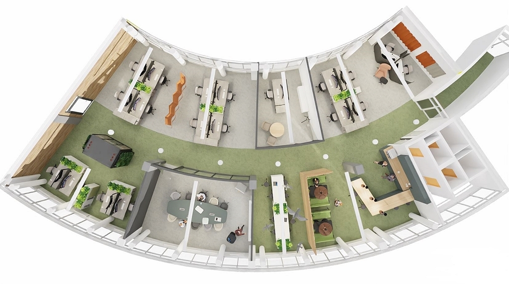 Zur Vermietung steht eine ca. 387 m² große Bürofläche, die sich im 4. Obergeschoss eines Bürohauses befindet.