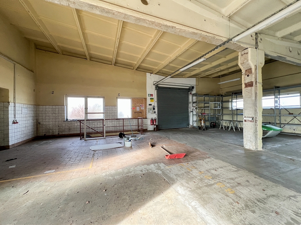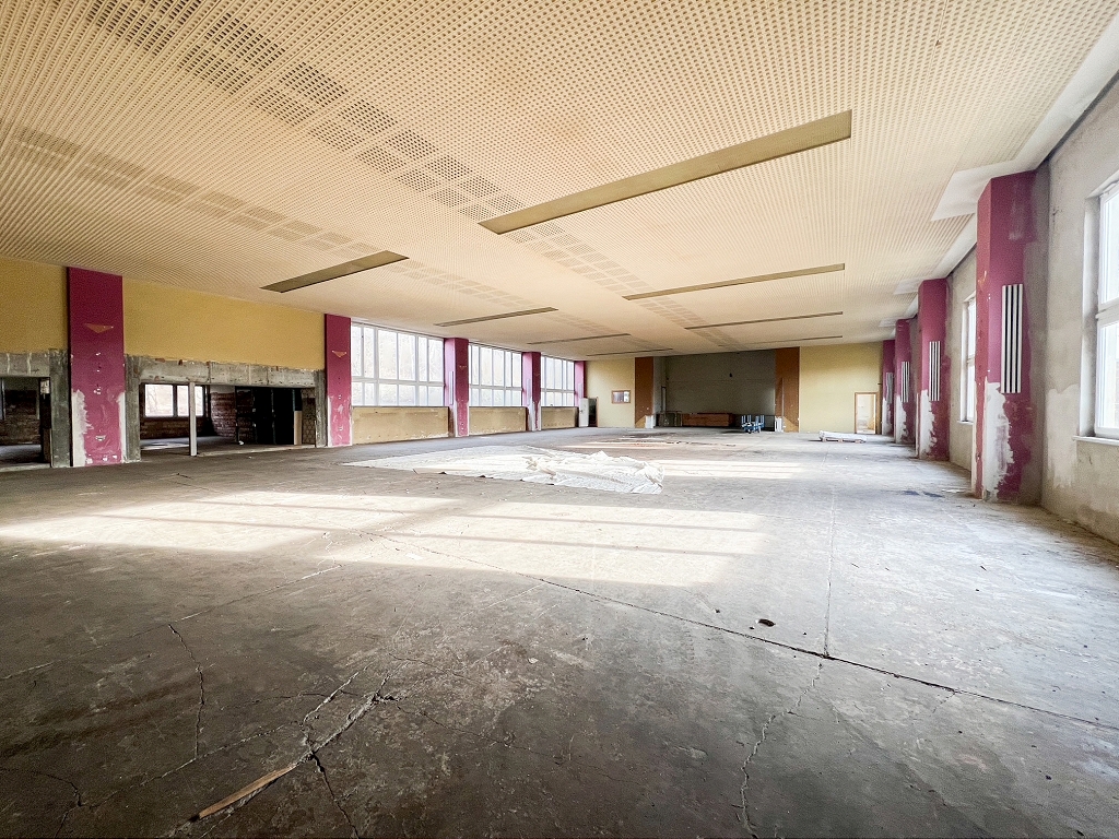 Das Grundstück ist mit einem ca. 1.986 m² großen Gebäude bebaut, welches vielfältige Nutzungen, wie wie z.B. Lager oder Produktion zulässt. Zuletzt wurde das Gebäude als Lager genutzt. Früher diente das Gebäude u.a. als Kantine samt Ballsaal.
