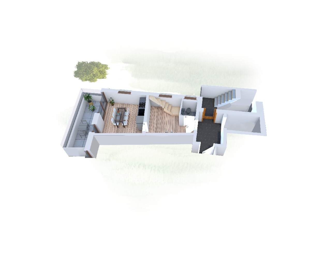 * ebenerdige überdachte Stellplätze im Erdgeschoss sowie Außenstellplätze