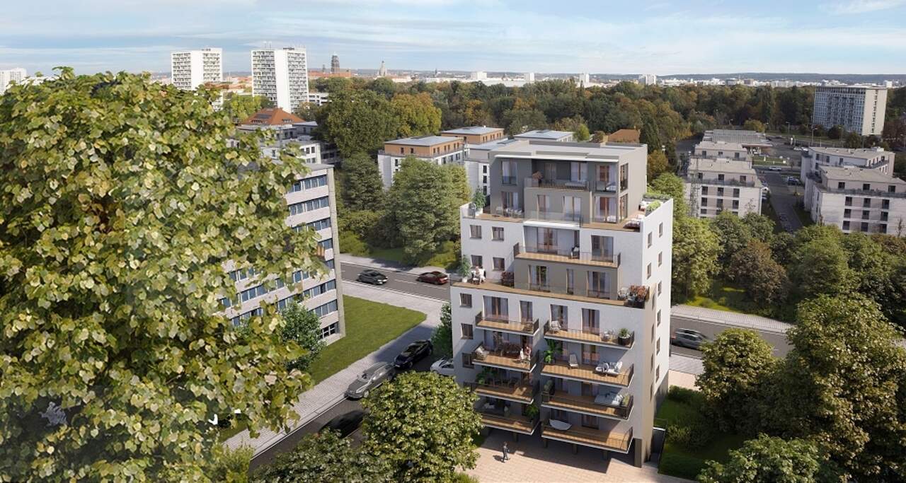 Auf einem rund 650 m² großen Grundstück in Innenstadtnähe ist ein modernes, neungeschossiges Mehrfamilienhaus mit insgesamt vierzehn barrierefreien Wohneinheiten und 1 Gewerbeeinheit im Erdgeschoss geplant. Das Projekt "City View_S 26" erfüllt den Energiestandard KfW 40 + QNG. Die 2-, 3- und 4-Zimmerwohnungen bieten je nach Grundriss zwischen etwa 57 und 118 m² Wohnfläche. Großzügige Terrassen und Balkone erweitern den Wohnraum, während die exklusiven Dachgeschosswohnungen über Dachterrassen verfügen und einen besonderen Ausblick bieten.