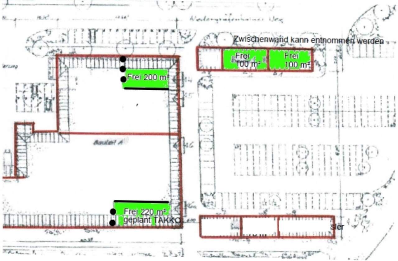 Zur Vermietung steht eine ca. 100 m² große Verkaufsfläche, die sich innerhalb eines Fachmarktcenters befindet. Bereits ansässige Mieter sind Tedi, ein Lebensmittelhandel, Gastronomie und Werkzeughandel. Der objekteigene Pakplatz bietet bis zu 120 Stellplätze.