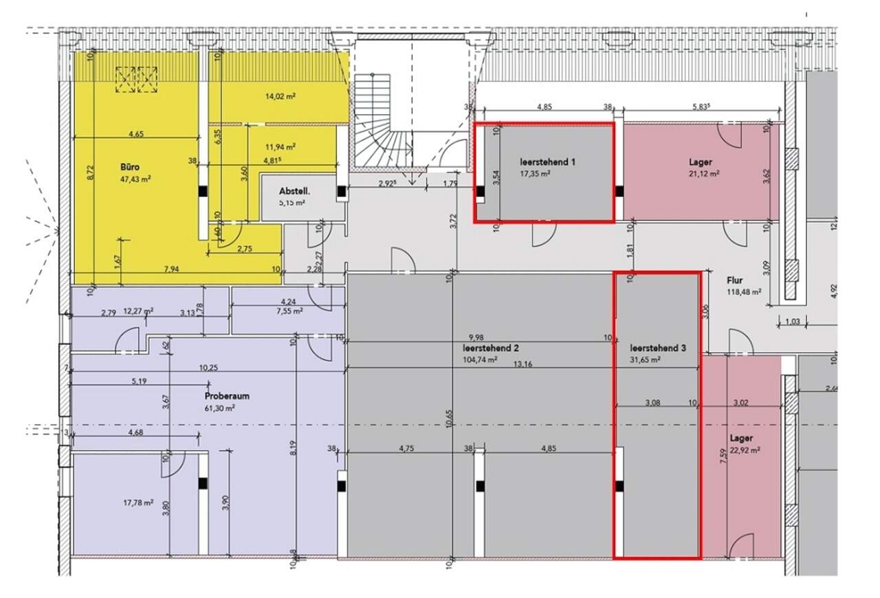 Bei Interesse steht noch eine ca. 32 m² große Gewerbefläche (direkt gegenüberliegend) zur Vermietung.