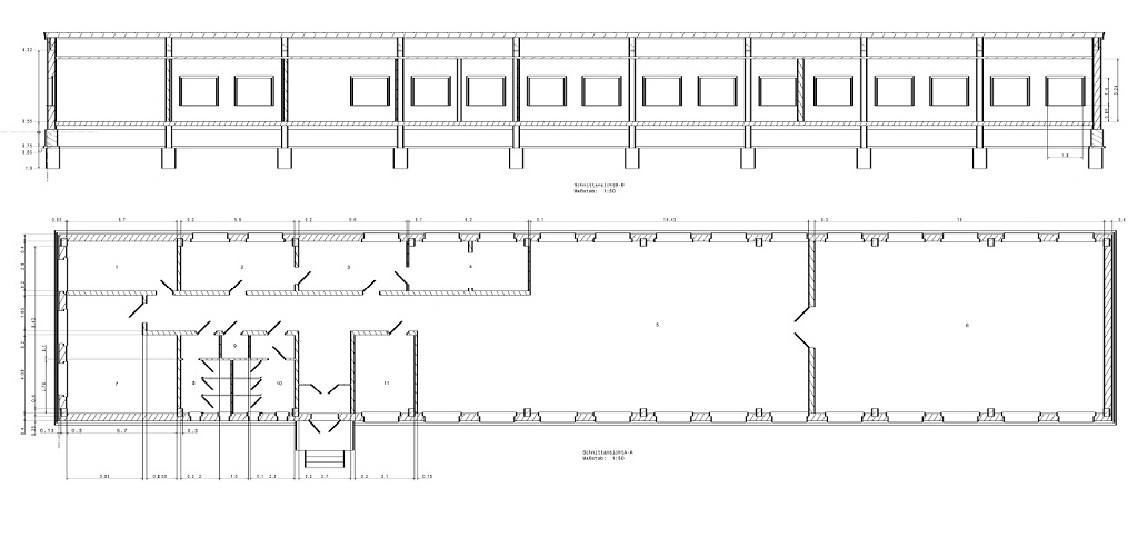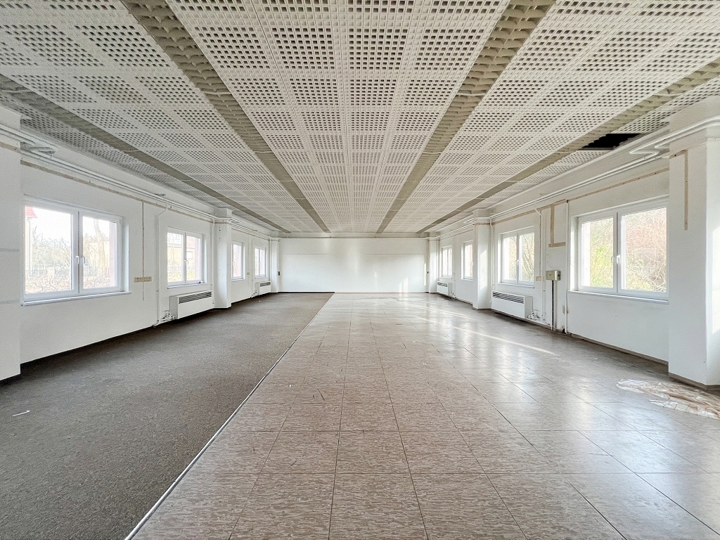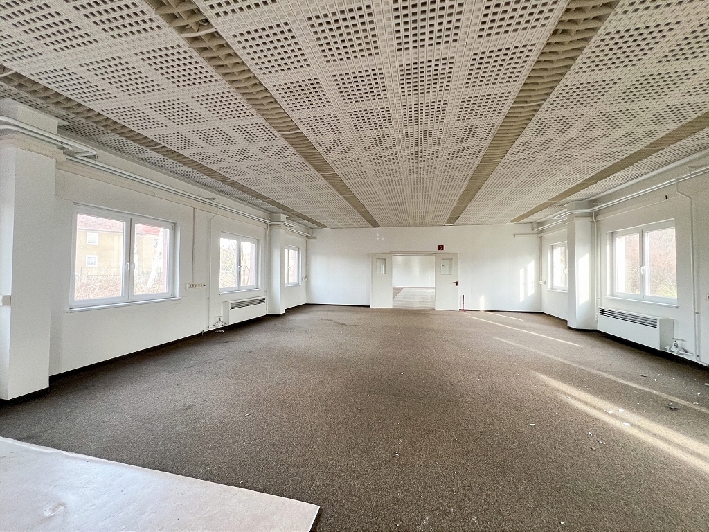 Im vorderen Teil der Immobilie befindet sich der ehem. Büro- und Sozialtrakt mit WCs und einem Feuerfesten und klimatisierten Serverschrank.