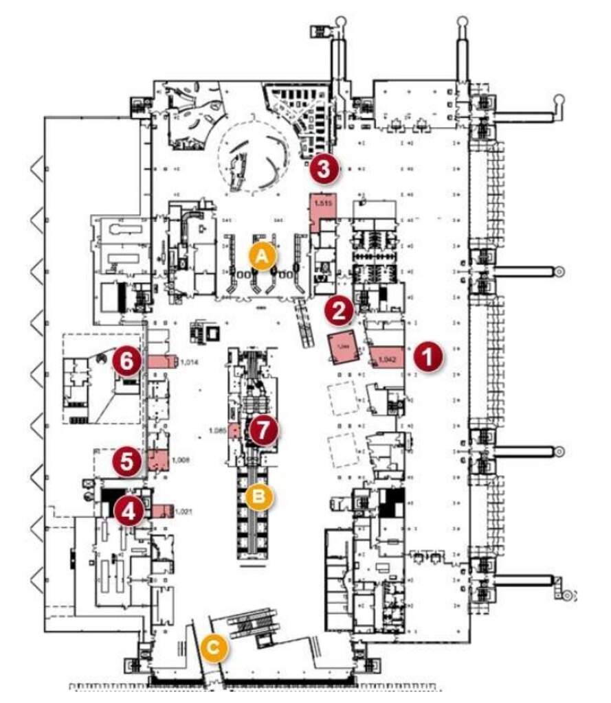 Zur Vermietung steht eine Bürofläche mit ca. 68 m², die sich im Flughafen Terminal befindet. Die Mietfläche befindet sich in gut sichtbarer und in zentraler Lage im öffentlichen Ankunftsbereich sowie auf der westlichen Hälfte der Abflugebene, neben den Check-In Bereich und entlang der Laufwege der Passagiere zu den Sicherheitskontrollen.