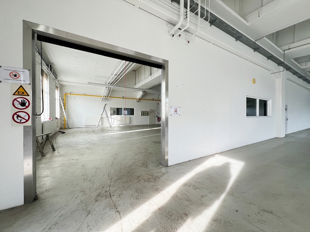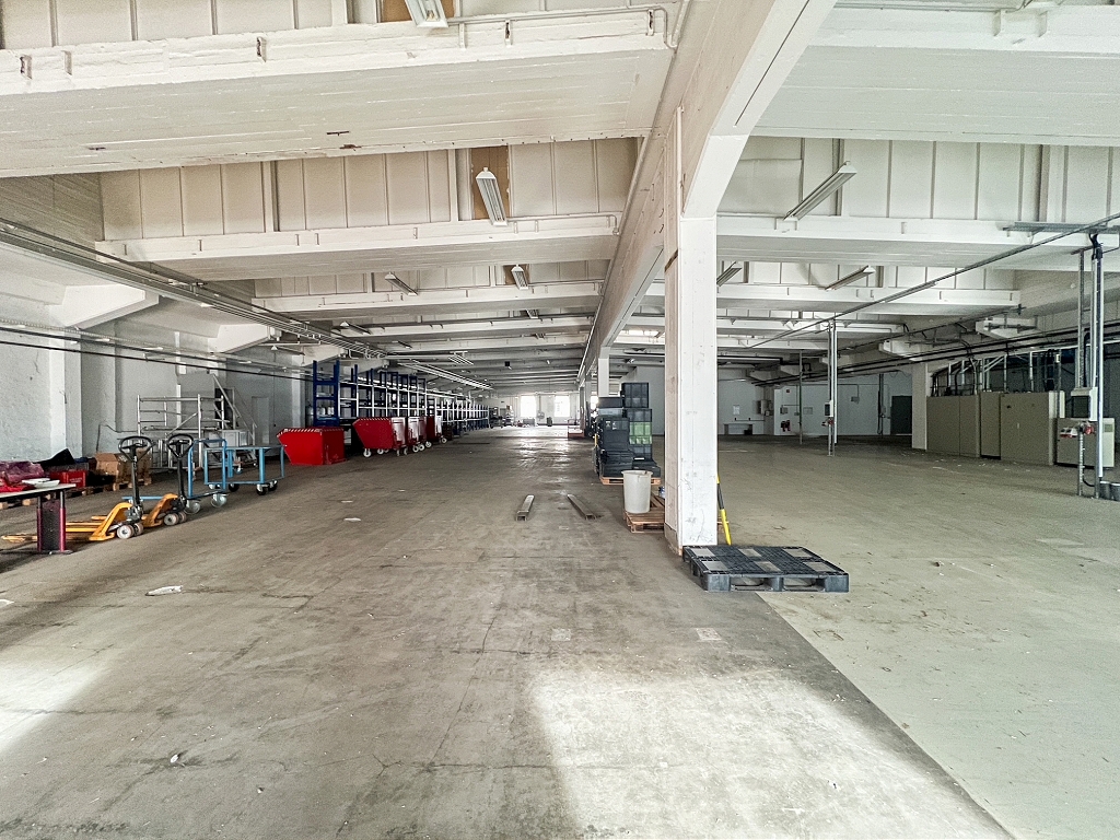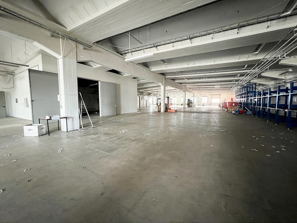 Auf dem Grundstück befindet sich eine ca. 6.100 m² große Hallenfläche, die sich ideal für Produktion und Lager eignet. Die Halle verfügt über ca. 5.100 m² ebenerdig befahrbare Fläche. Im EG sind u.a. auch Büros- und Sanitärflächen vorhanden. Das UG/Keller hat darüber hinaus ca. 1.000 m² Fläche. Hier befinden sich vorrangig Medien- und Lagerräume, welche ebenfalls von außen zugänglich sind.