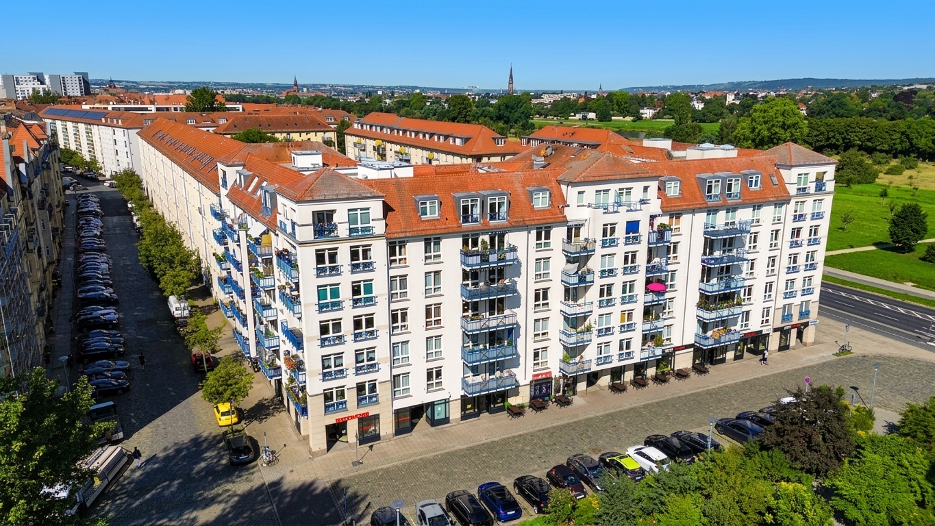Die Immobilie befindet sich in Dresden Johannstadt-Nord in ruhiger, unmittelbarer Nähe zu den Elbwiesen. Der Stadtteil gehört zum Ortsamtsbereich Altstadt und liegt östlich des Dresdner Stadtzentrums. Im Norden grenzt Johannstadt-Nord direkt an die Elbe, im Süden an den Großen Garten.