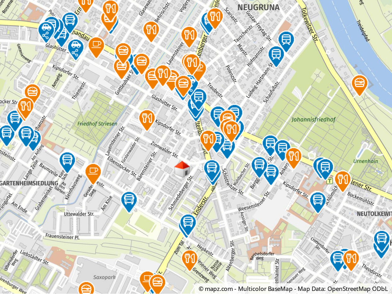 Der Standort überzeugt durch seine zentrale Lage und eine sehr gute Verkehrsanbindung. Haltestellen des öffentlichen Nahverkehrs sind in wenigen Gehminuten erreichbar – mit dem Auto benötigt man nur wenige Minuten ins Dresdner Stadtzentrum. Zahlreiche Einkaufsmöglichkeiten, wie beispielsweise am Altenberger Platz oder im nahegelegenen Seidnitz Center, befinden sich im direkten Umfeld und bieten eine komfortable Nahversorgung.