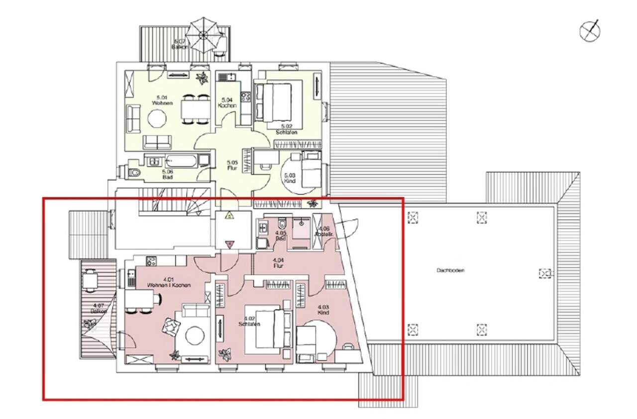 * geräumige Dachbodenfläche (nicht ausgebaut) als zusätzlicher Abstellraum von der Wohnung aus begehbar