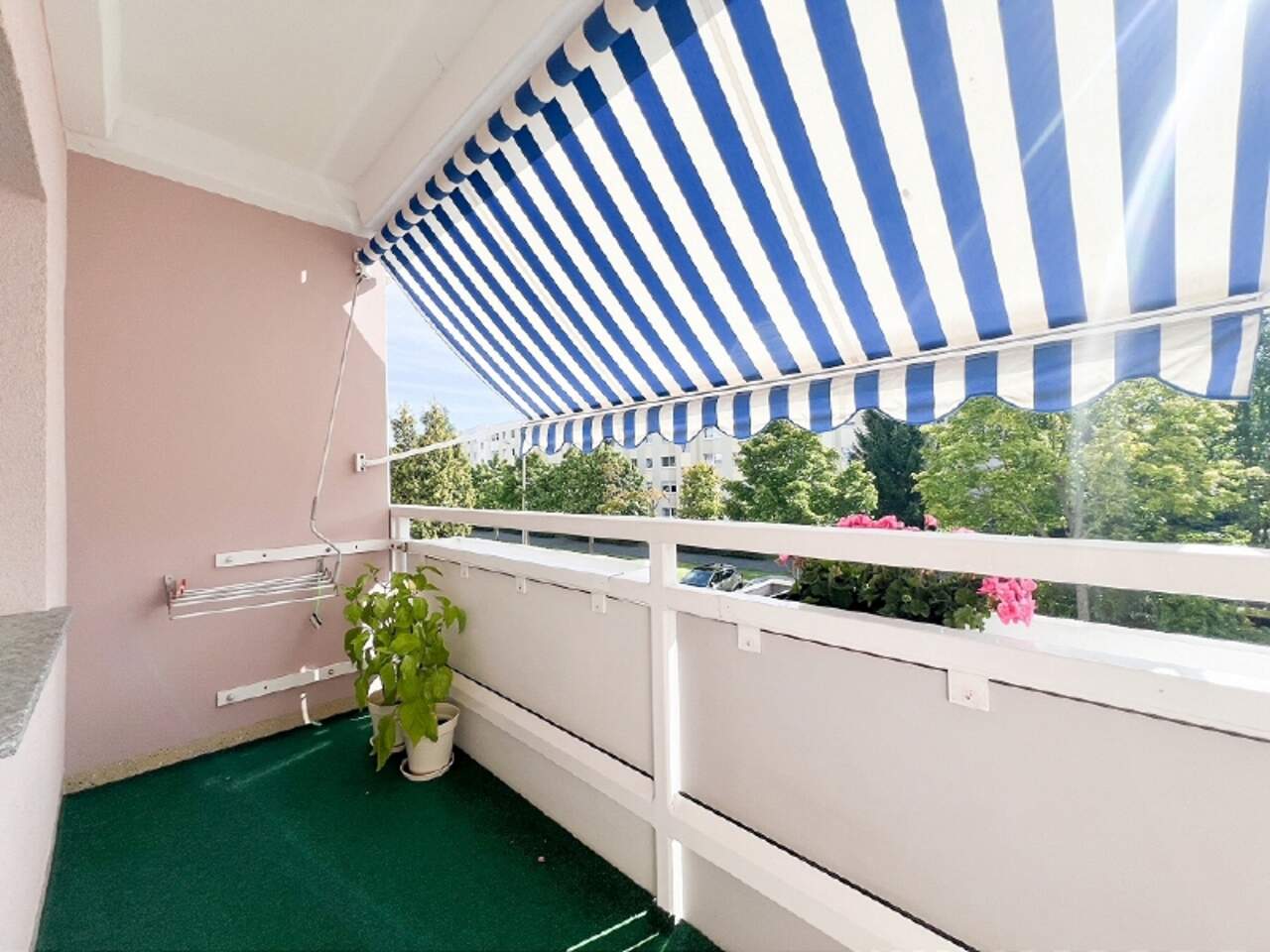 * großer Balkon mit Sonnenmarkise