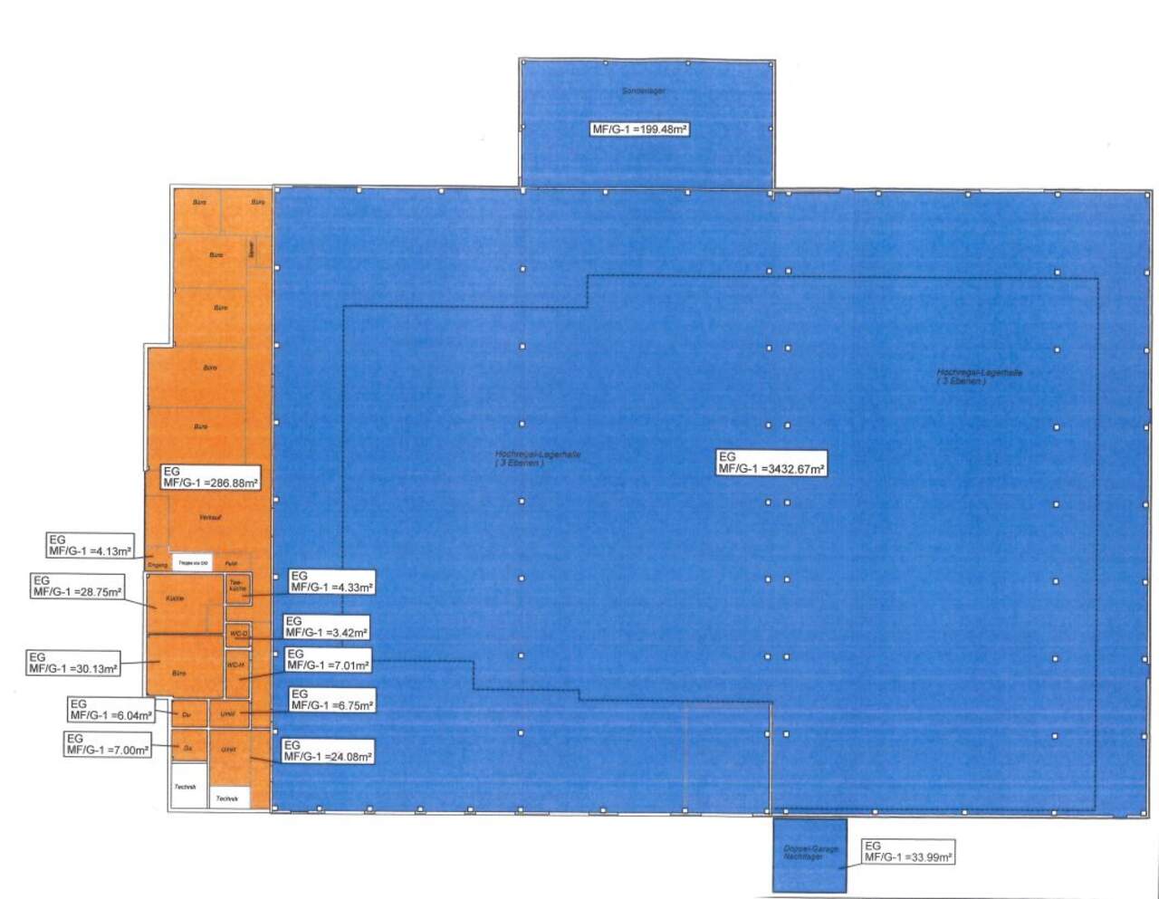 Zur Vermietung steht eine 4.341 m² große Lager- und Logistikhalle mit Büroanteil, die sich auf einem etwa 9.118 m² großen Grundstück innerhalb eines Gewerbegebiets befindet. Das Objekt wurde im Jahr 1995 errichtet und im Jahr 2000 um eine Erweiterung der Halle sowie die Aufstockung des Bürotrakts ergänzt.