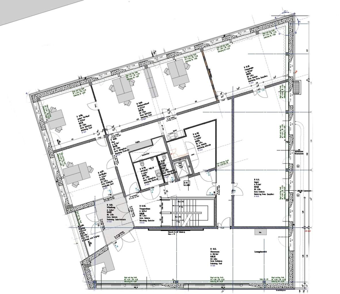 Zum Verkauf steht ein projektiertes Gewerbegrundstück mit (nunmehr ausgelaufener ) Baugenehmigung für ein ca. 1.871 m² (BGF) großes Bürohaus. Die Planung sah den Bau eines 3-geschossigen Bürohaus sowie Untergschoss mit Aufzug vor. Das 2.OG sah eine Loggia mit ca. 46 m² vor. Um zusätzlichen Bürobedarf abdecken zu können, sollte hier geprüft werden, inwieweit die Loggia weiteren Büroflächen weichen kann, bzw. sollte.