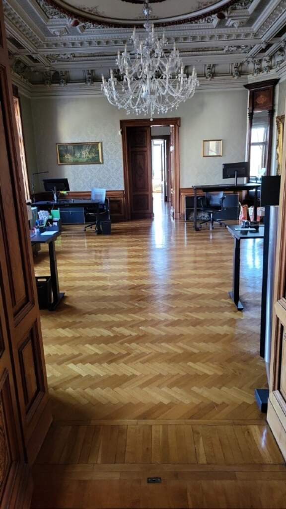 Diese denkmalgeschützte Villa wurde 1888 als Wohnhaus des Holzgroßhändlers Carl Ernst Grumbt im Neorenaissance - Stil errichtet. Die Villa wurde hochwertig saniert. Hervorzuheben sind neben dem prunkvollen Kuppeltreppenhaus vielfältige Stuckelemente, Holzvertäfelungen, Parkettböden und Treppenhäuser in Marmor. Zwei Etagen stehen ab 2026 zur Vermietung zur Verfügung. Eine etagenweise Anmietung ist möglich. Dieses Angebot beinhaltet das 1.OG mit 356m². Die Belle Etage steht im Jahr 2026 ebenfalls zur Verfügung.