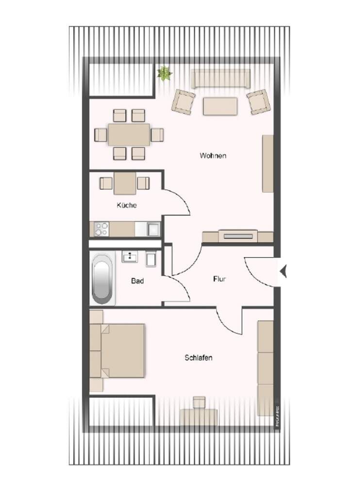 Diese frisch renovierte moderne 2-Raumwohnung im Dachgeschoss eines gepflegten Mehrfamilienhauses überzeugt mit einer gelungenen Raumaufteilung, neuem Bodenbelag, einem modernen Tageslichtbad, Einbauküche und einem Stellplatz direkt vorm Haus - was will man mehr?