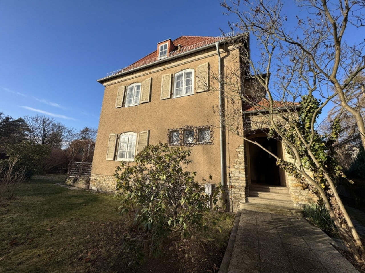 Zum Verkauf steht eine charmante, denkmalgeschützte Stadtvilla aus dem Baujahr 1938. Das zweigeschossige, vollunterkellerte Gebäude verfügt über eine großzügige Wohnfläche von etwa 180 m² und befindet sich auf einem rund 720 m² großen Grundstück, auf dem sich zudem eine Garage befindet.