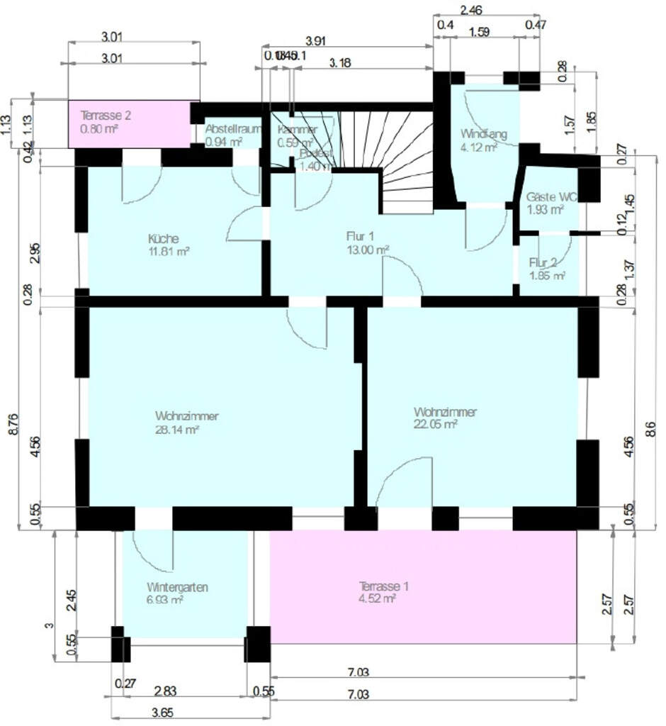 * Raumhöhe Obergeschoss ca. 2,70 m und im Erdgeschoss ca. 3,20 m