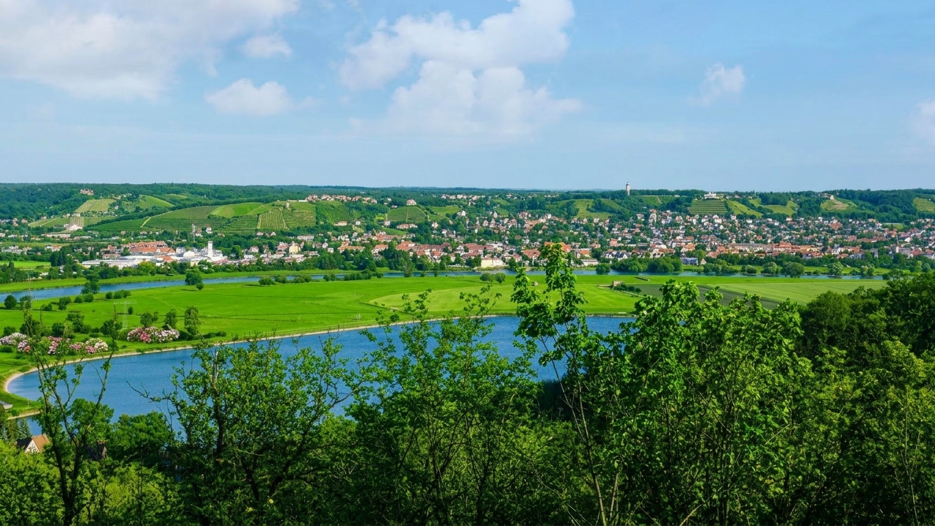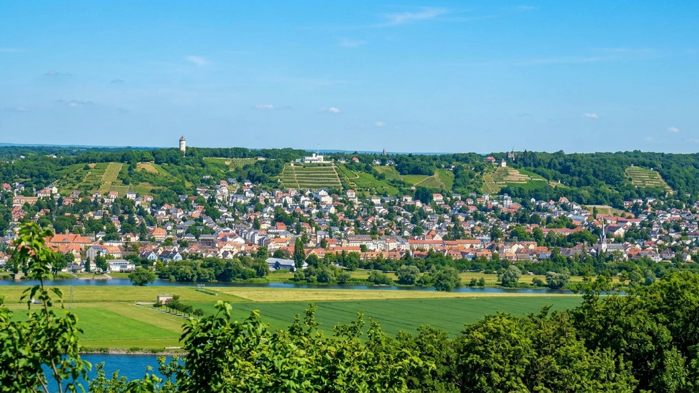 - Weitblick über Dresden bis auf die Weinberge von Radebeul