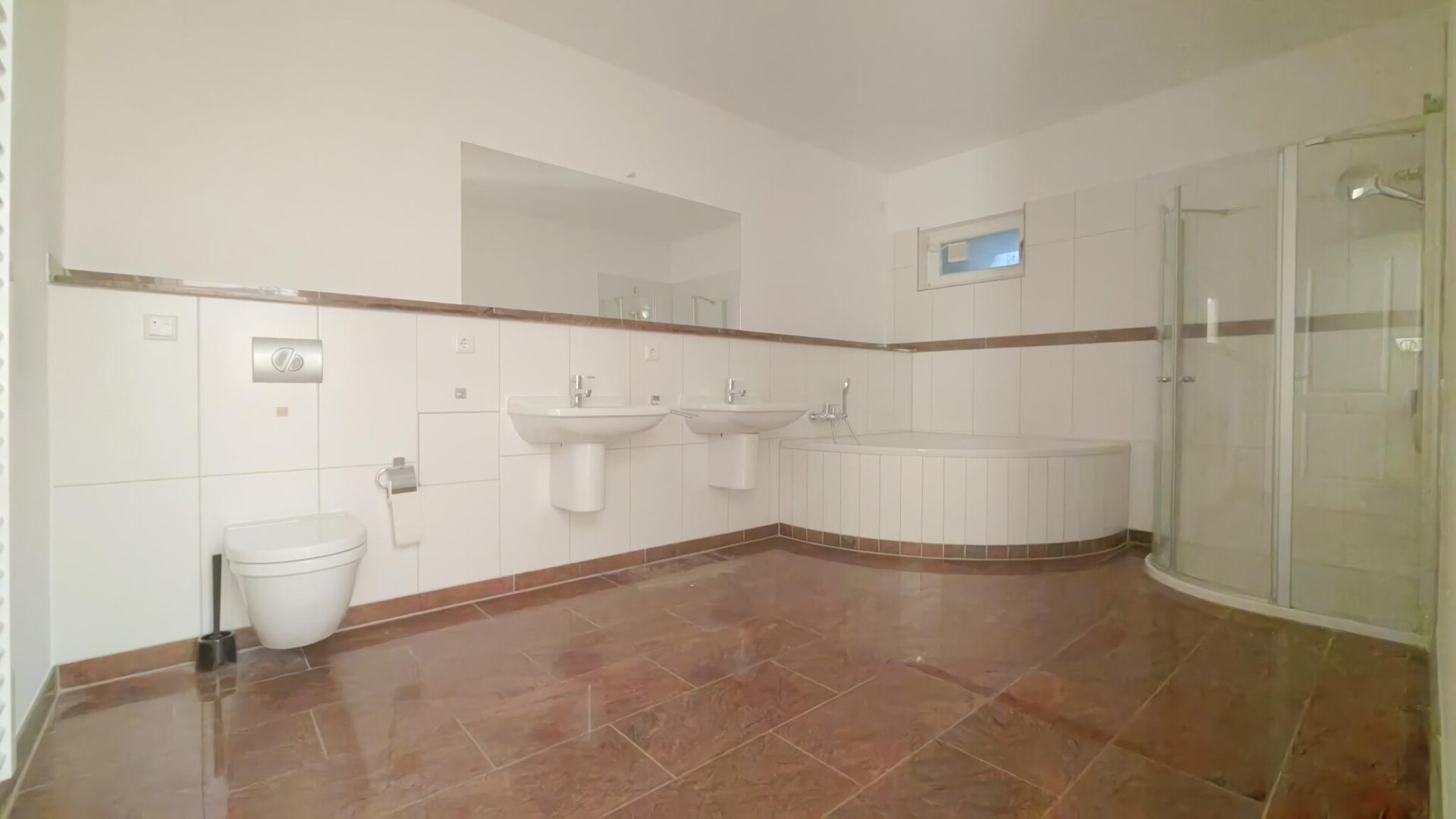 - Masterbad mit Eckbadewanne, Dusche, Doppelwaschtisch und WC im Erdgeschoss