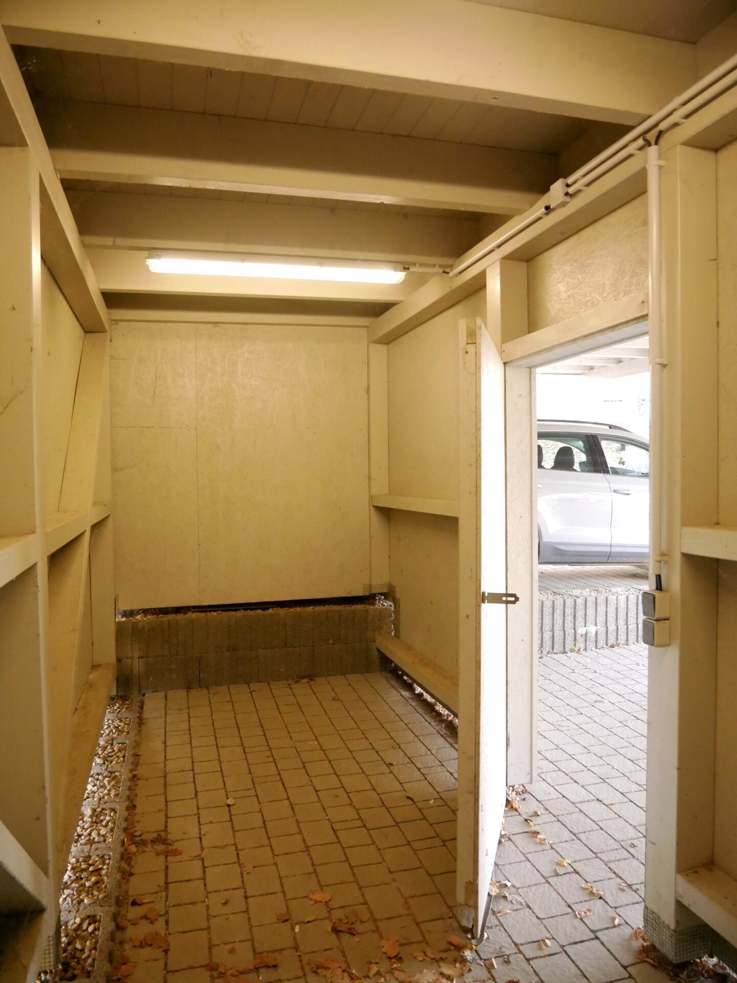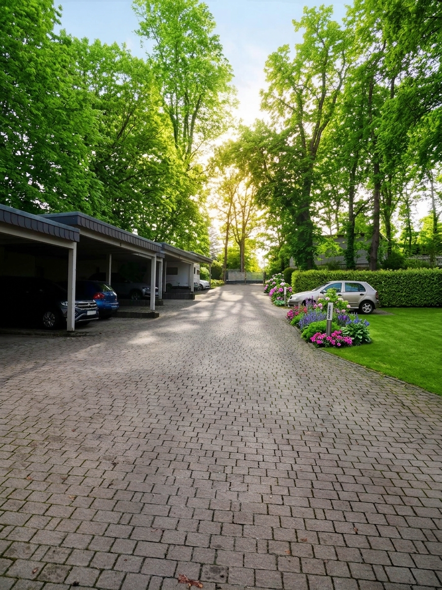 Auf dem ca. 12.000 m² Grundstück befindet sich das massive Doppelcarport ( ca. 5,50l x 2,69h x 5,18b) mit direktem Zugang zu einem Abstellraum (ca. 10 m²) für Fahrräder. Dieser ist im Kaufpreis bereits inbegriffen.