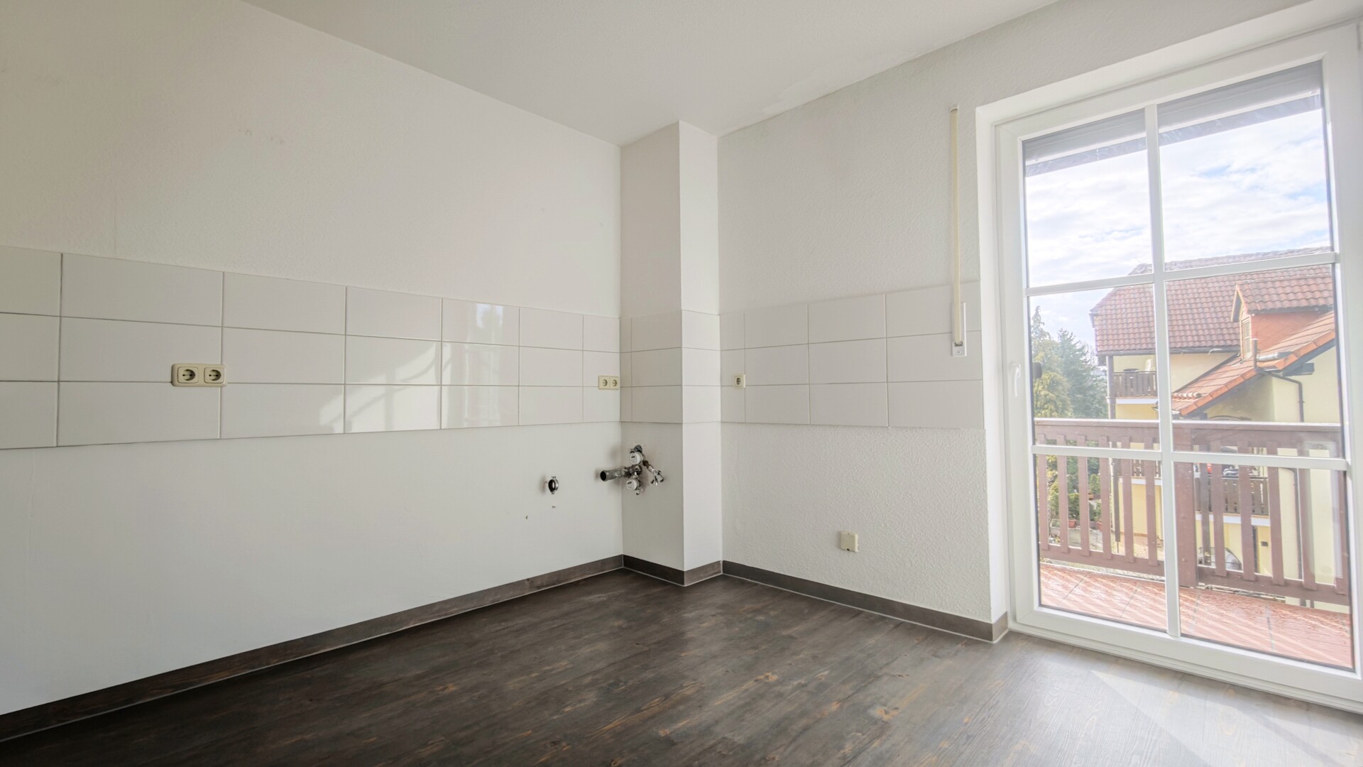 Alle Wohn- und Schlafräume haben eine angenehme Größe, sind vom Flur aus begehbar und bieten jeweils Zugang zu den Balkonen. In der separaten Küche können Sie sich mit einer schönen Einbauküche verwirklichen. Ein kleiner Esstisch kann hier leicht platziert werden.