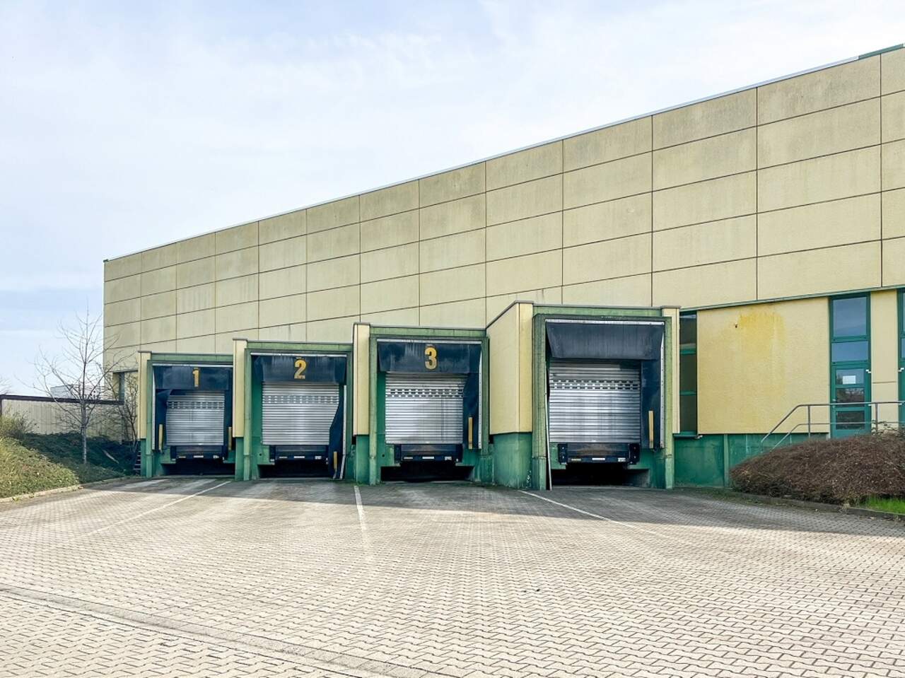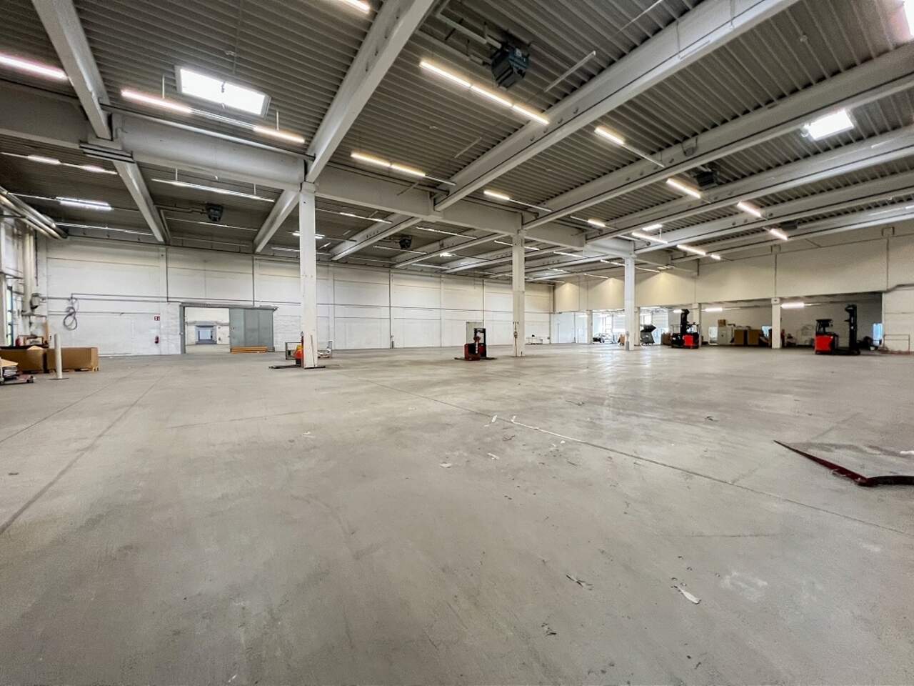 Zur Vermietung stehen ca. 2.169 m² Halle im EG, 413 m² als Mezzanine im 1.OG sowie ca. 419 m² Bürofläche im 2.OG, die sich innerhalb einer ca. 12.000 m² großen Lager- und Logistikimmobilie (Baujahr ca. 1992) befinden. Die Flächen zeichen sich durch ihren rechteckigen Grundriss, und die große Vielfältigkeit durch sowohl eine ebenerdige Anlieferung, als auch eine Anliefierung über Rampen aus.