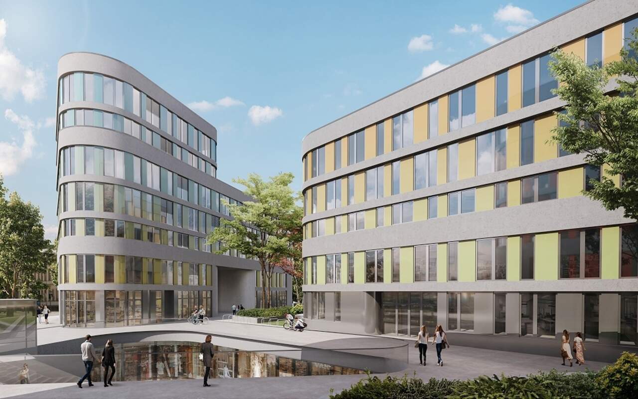 Zur Vermietung steht eine ca. 345 m² große Ladenfläche, die im Erdgeschoss eines Neubauprojektes entsteht. Auf einem ca. 9.000 m² großen Grundstück werden drei moderne Neubauten mit Wohn- und Büronutzung errichtet. Das höchste Gebäude wird elf Stockwerke hoch sein. In der Mitte des Areals sind begrünte Flächen mit Gastronomie und Ladenflächen geplant. In dem zweiten Untergeschoss sind Fahrrad- und PKW Stellplätze vorgesehen sowie im ersten Untergeschoss eine Supermarktfläche.