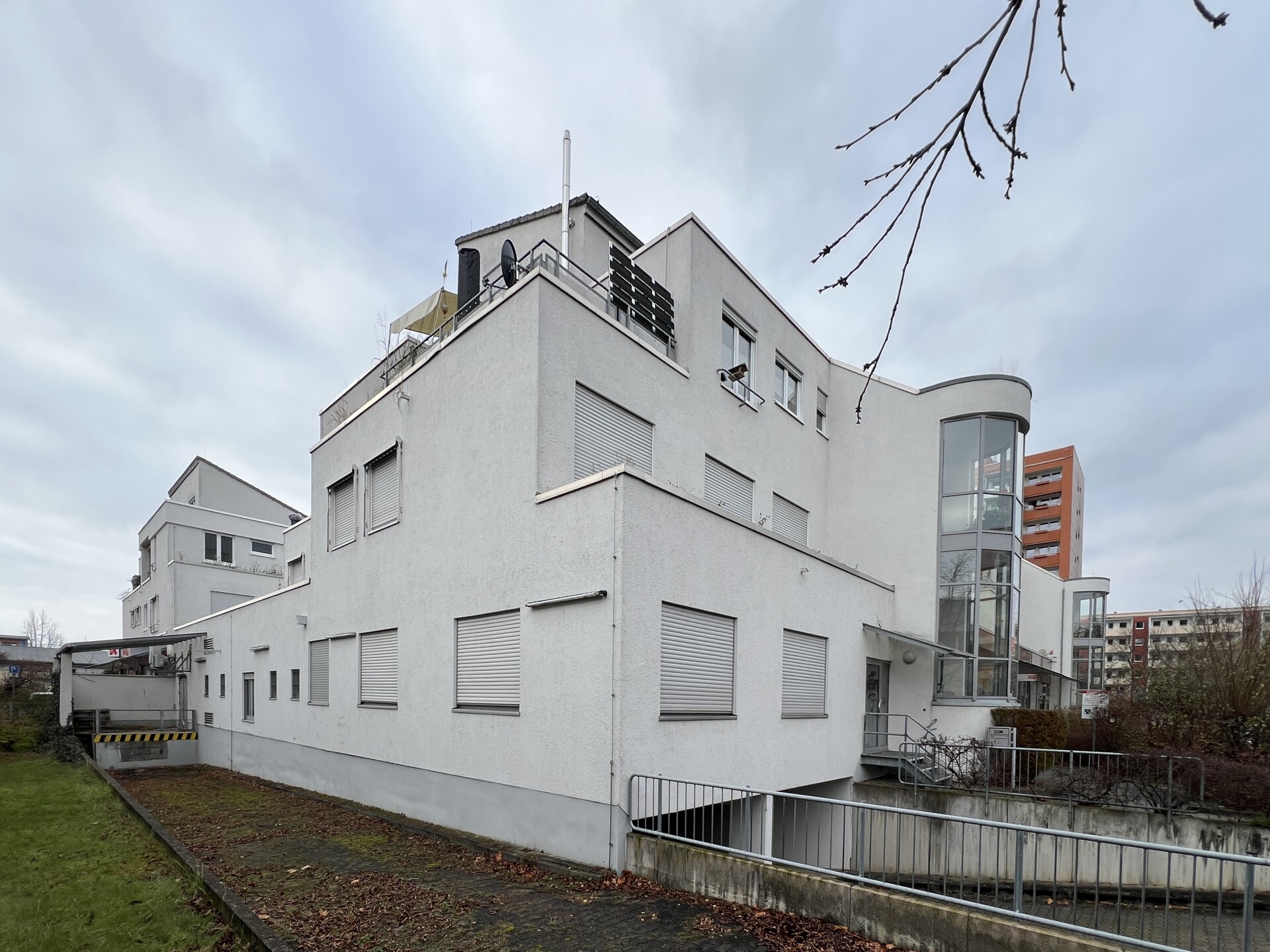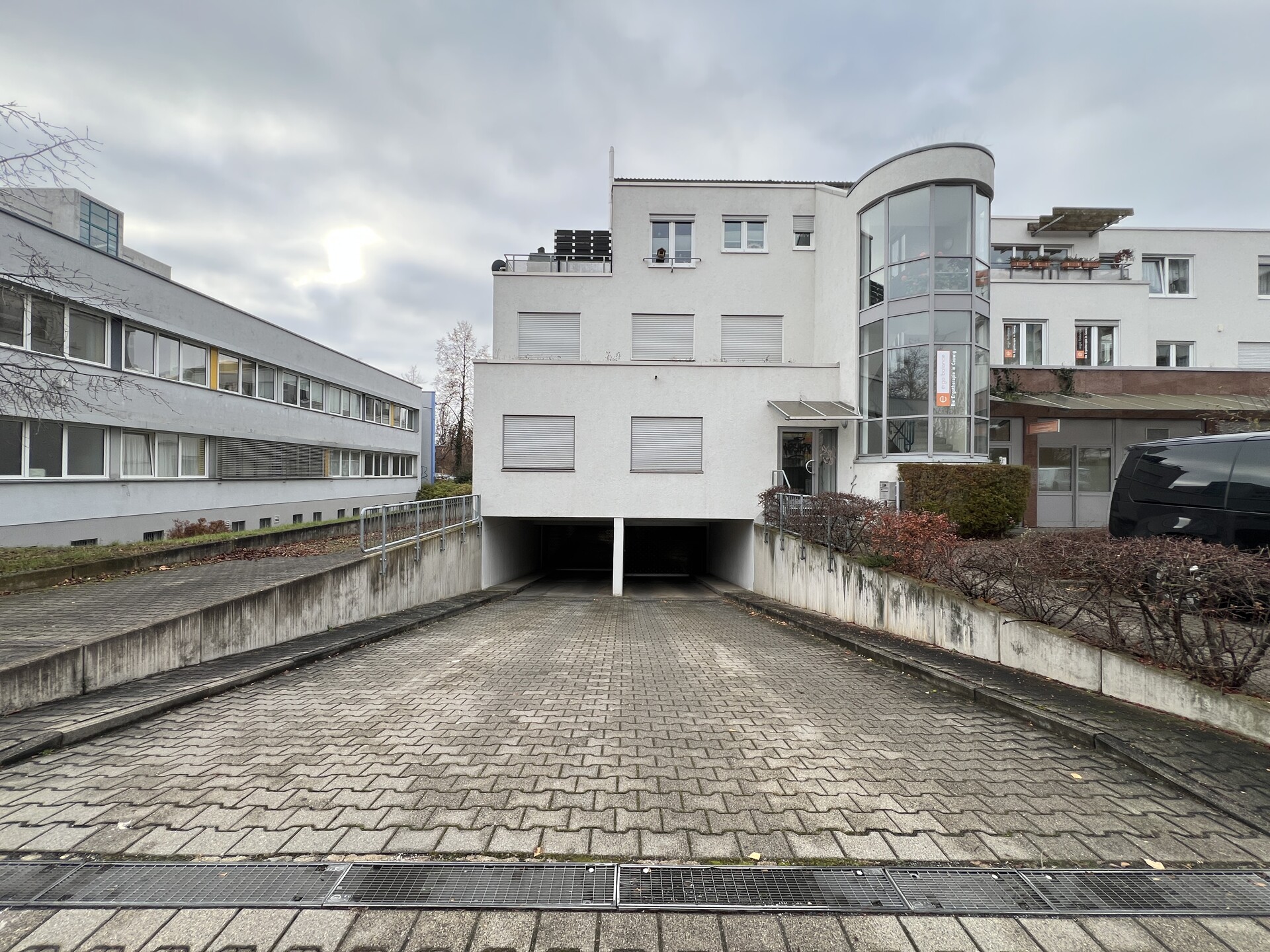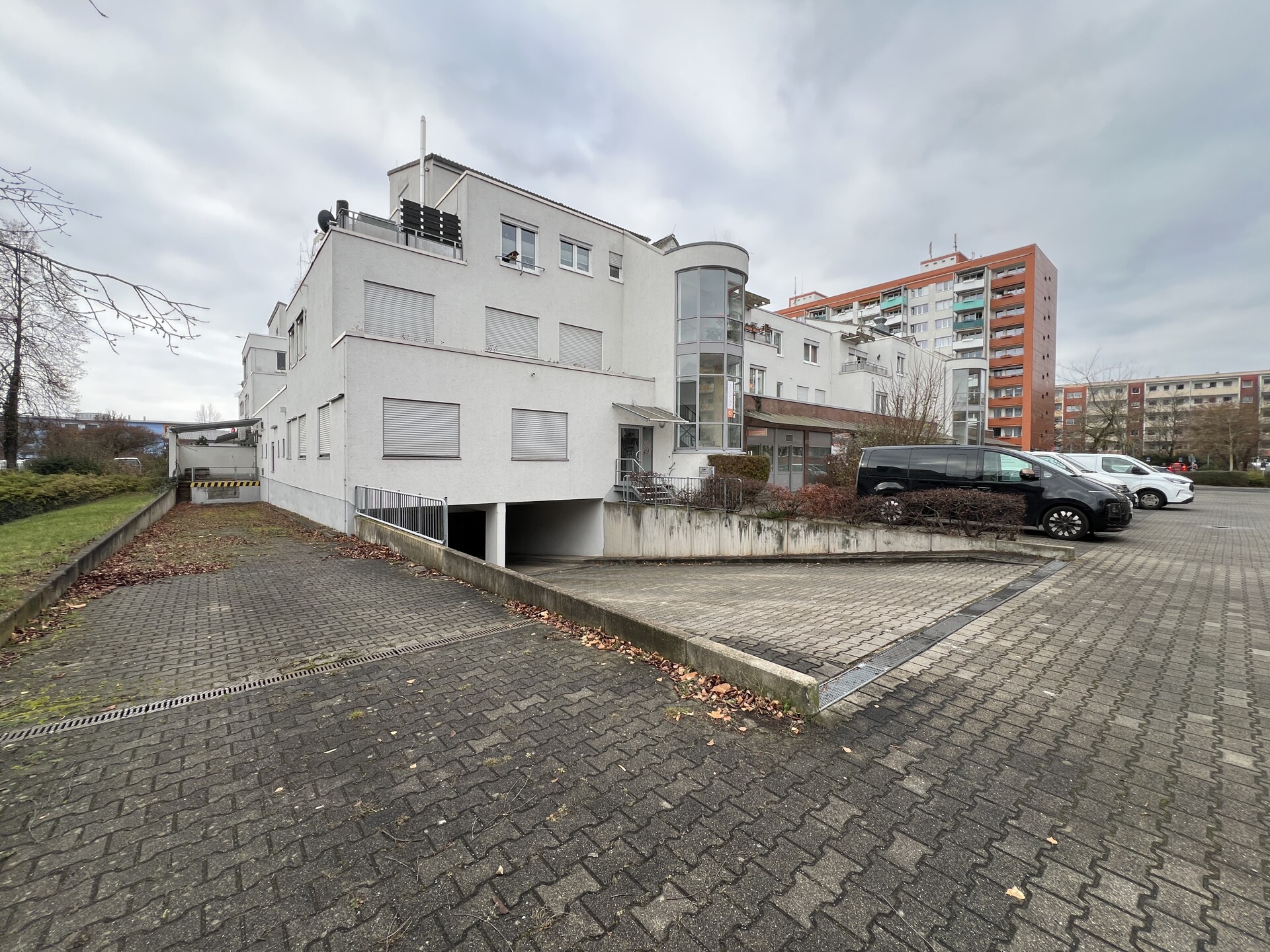 Im Erdgeschoss sind großzügige Laden- und Büroflächen untergebracht, während sich in den Obergeschossen Wohnungen befinden. Die hauseigene Tiefgarage erstreckt sich über das Untergeschoss.