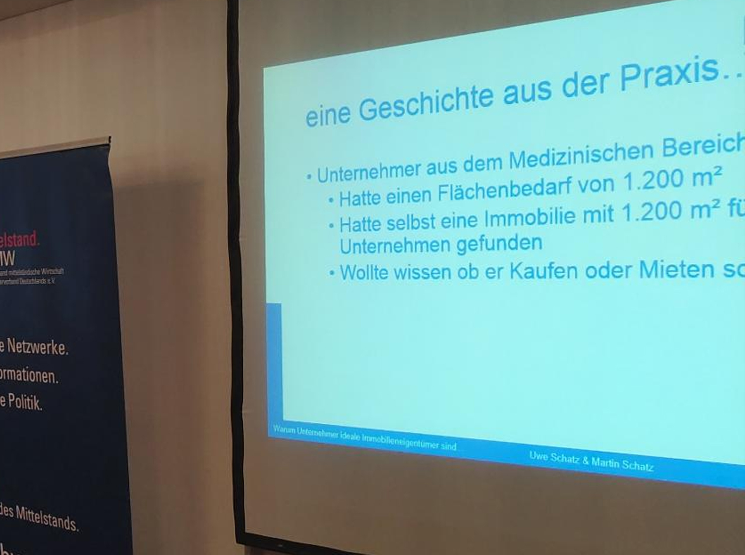 Anhand eines Beispiels zeigten Uwe und Martin Schatz sehr anschaulich, welche Entscheidung aufgrund der Immobilienberatungen von DER IMMO TIP getroffen wurde. In diesem konkreten Fall, stand der Kunde vor dem Kauf einer Büroimmobilie, welche er zur Selbstnutzung erwerben wollte. Durch die Beratung, entschied sich dieser Kunde dann, stattdessen ein Bürohaus als Investment mit eigener sowie fremder Einmietung zu tätigen. Bedeutend bessere Finanzierungsvoraussetzungen und die Erzielung einer Rendite wurden somit geschaffen.