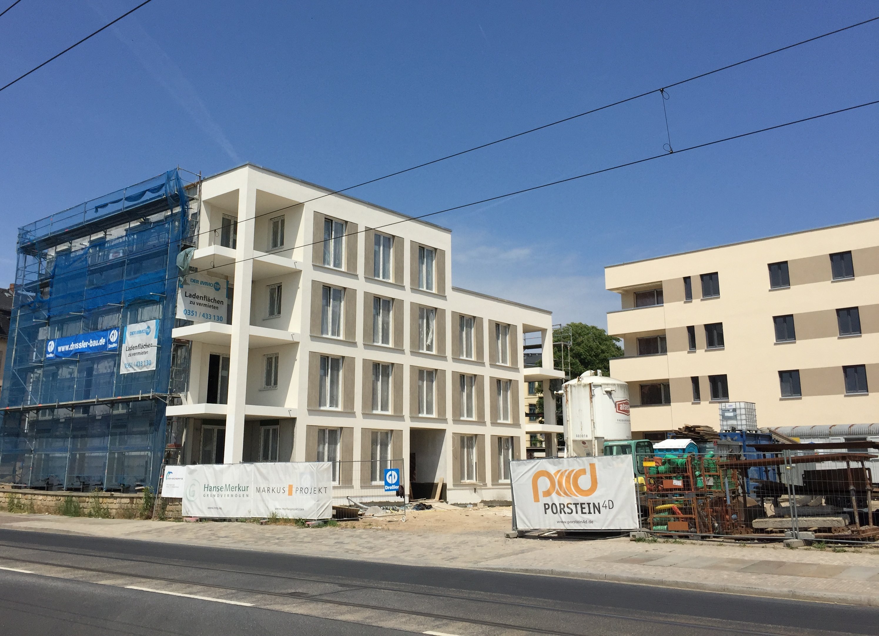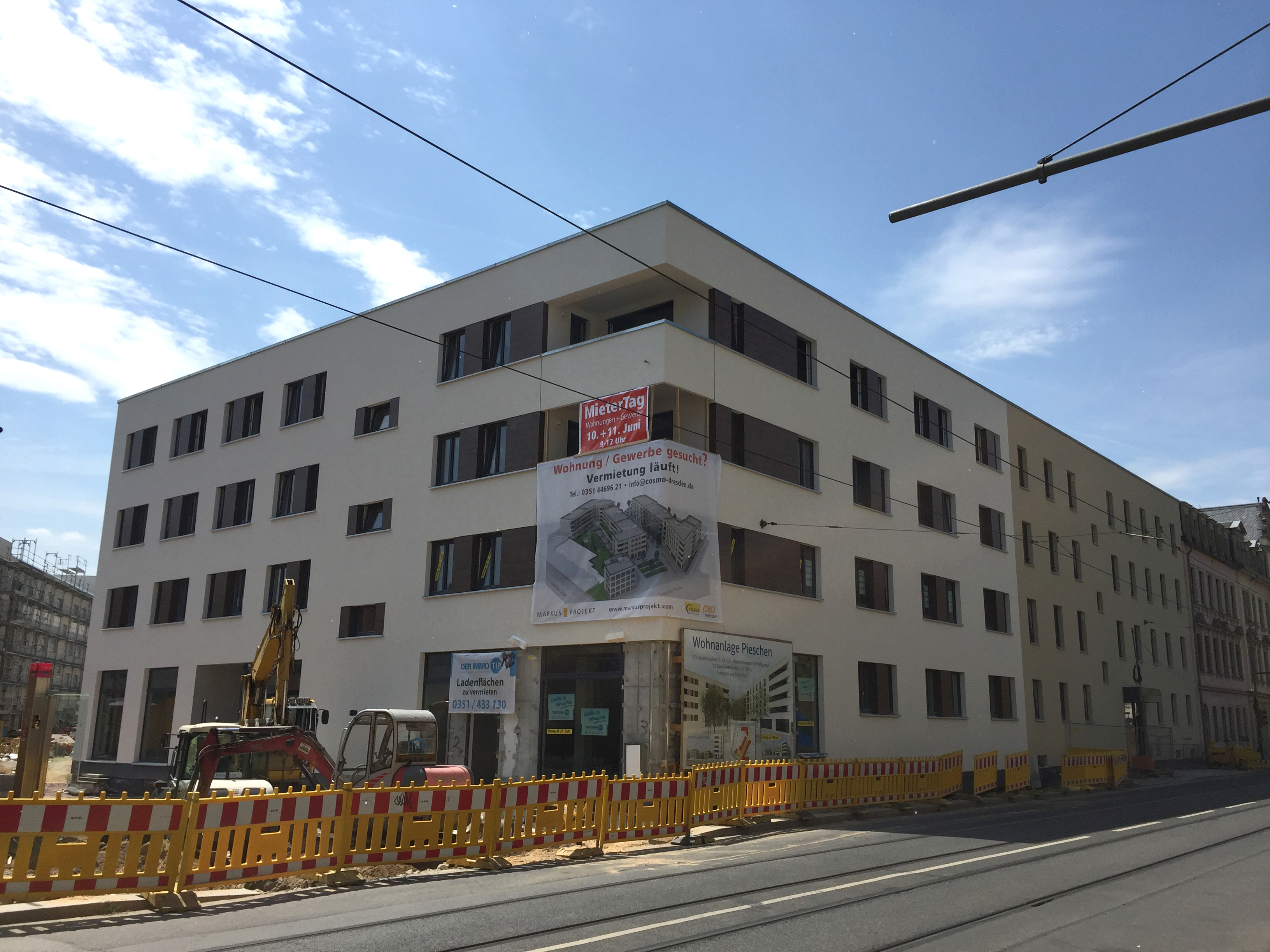 Beim Mietertag am vergangenen Wochenende kamen rund 350 Besucher auf die Großbaustelle am Pieschener Hafen. Hier entstehen derzeit 114 hochmoderne Mietwohnungen sowie 11 Gewerbeeinheiten. Die Interessierten konnten das MARKUS-PROJEKT in der letzten Bauphase sowie eine Musterwohnung besichtigen und sich über Grundrisse, Preise und Ausstattungen informieren. Die Wohnungen werden in 4 Bauabschnitten fertig gestellt und ab Oktober 2017 können bereits die ersten Mieter einziehen. Die Wohnungen haben Balkon, Loggia oder Terrasse, sind barrierefrei und mit Aufzug sowie mit Fußbodenheizung und modernen Vinylbodenbelegen ausgestattet. Es können Stellplätze in der Tiefgarage angemietet werden.