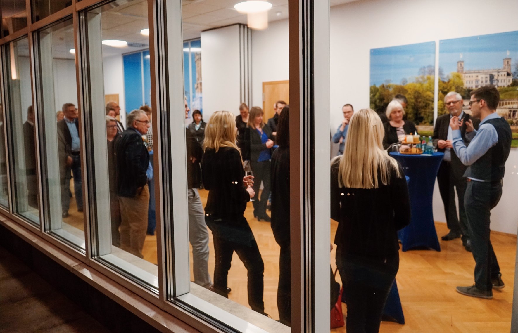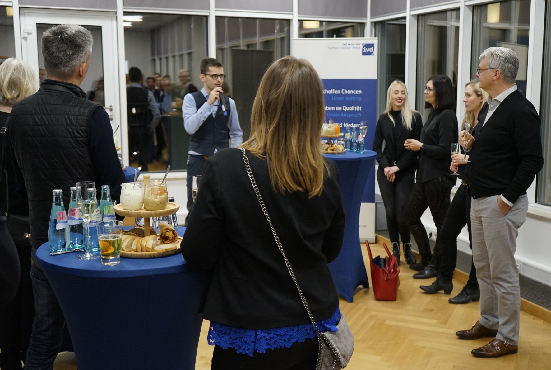In diesem Jahr lud IVD Repräsentanzleiter der Region Dresden Uwe Schatz zum Neujahrsempfang in die Räumlichkeiten der Deutschen Kreditbank ein. Den Gästen bot sich von der oberen Etage des DKB-Bürogebäudes eine wundervolle Aussicht über die Stadt.