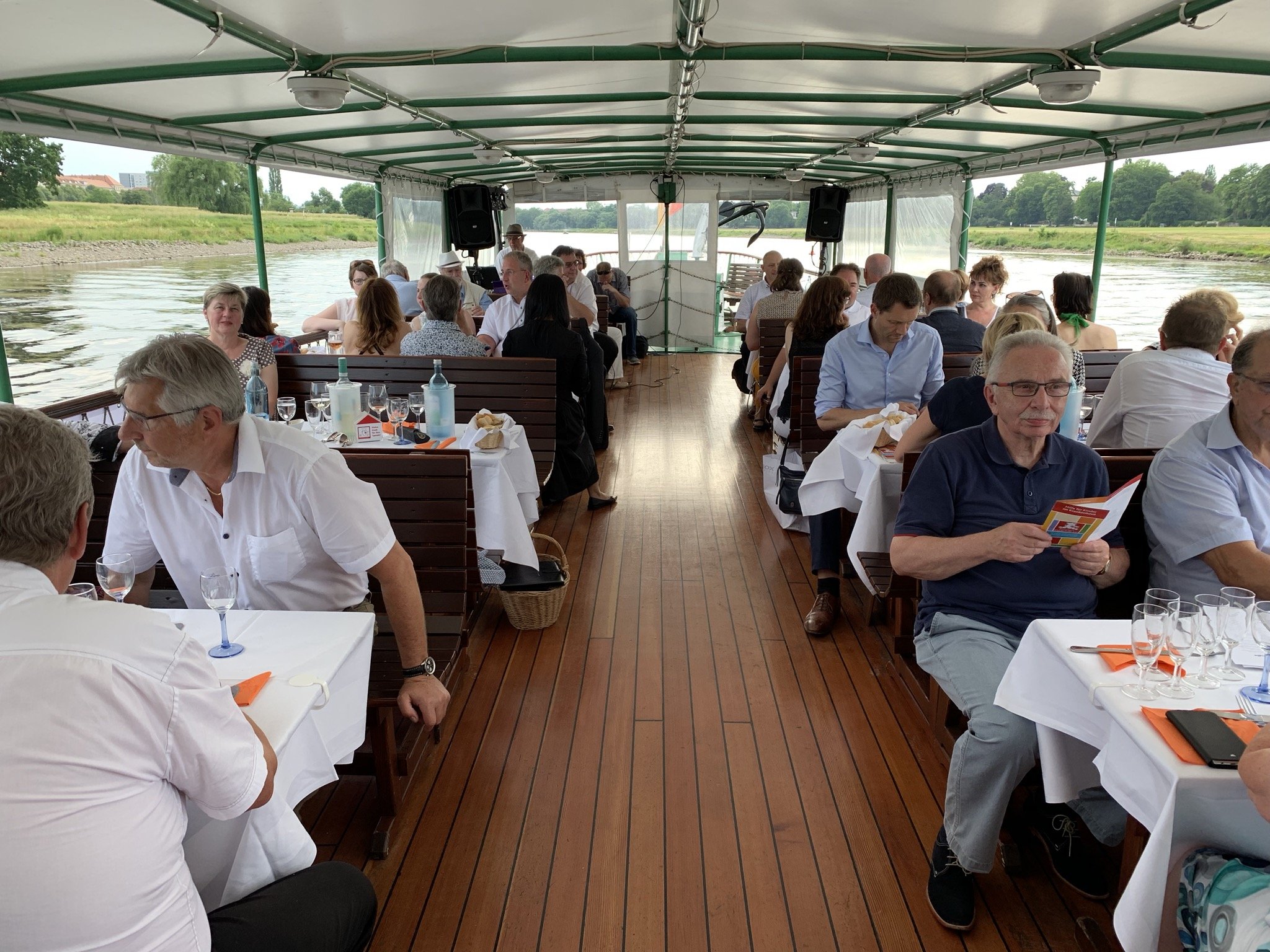 Während der vierstündigen Schifffahrt wurde ein leckeres Sommerbüfett sowie kühle Getränke gereicht und musikalische Klänge luden zum Tanzen ein. Mit dem spektakulären Blick auf die malerische Kulisse der Dresdner Altstadt zur „Blauen Stunde“ endete das diesjährige Sommerfest, welches unterstützt wurde durch DER IMMO TIP Vermittlung von Immobilien GmbH, die DKB Deutsche Kreditbank AG und der Sächsischen Zeitung.