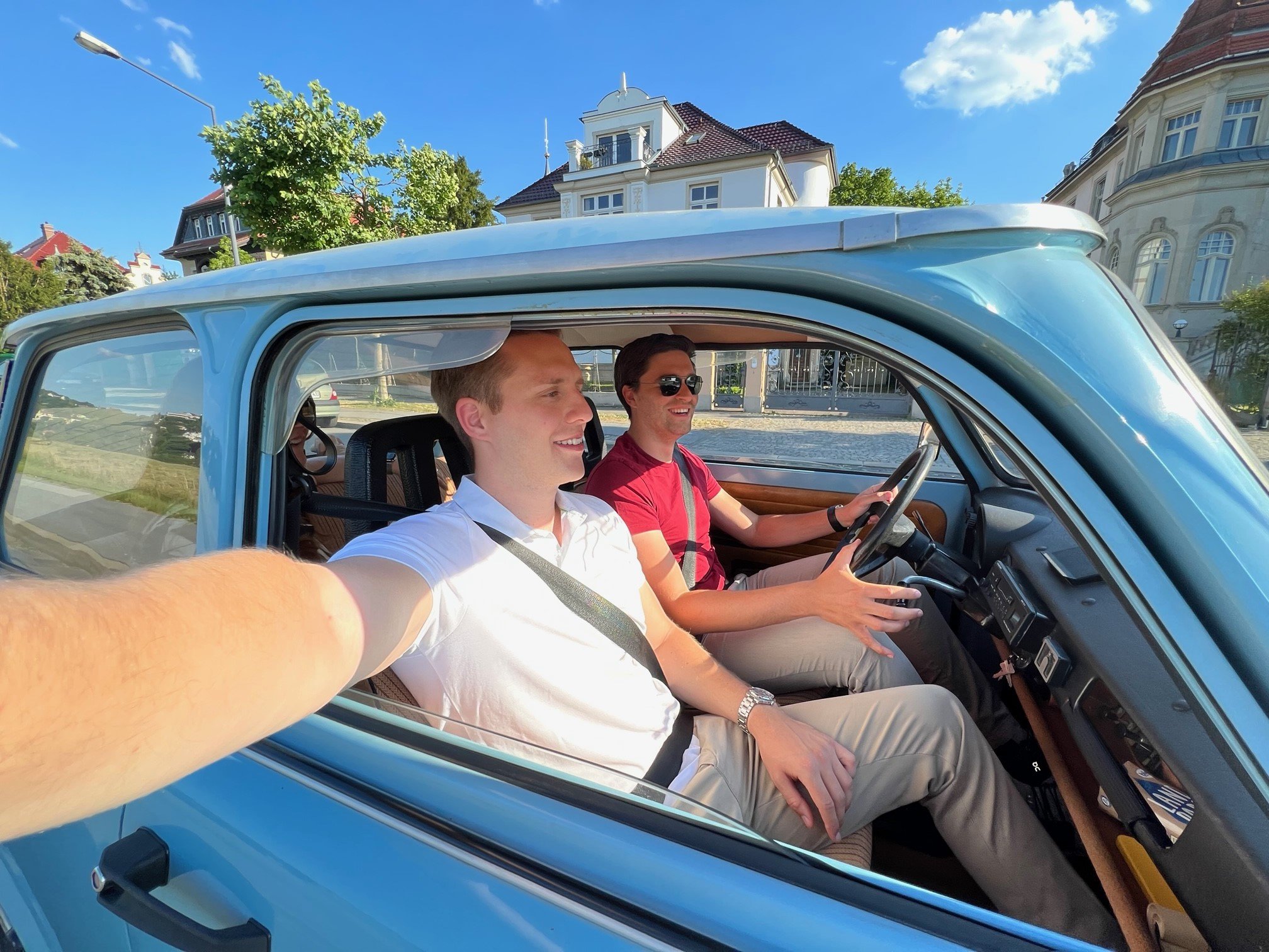 Durch Einladung der Reco Immobilien- und Verwaltungsgesellschaft, dem Geschäftsführer Herrn Jürgen Rees wurden zum 11. Mal die Maklerkollegen aus Dresden zu einer sommerlichen Netzwerkveranstaltung eingeladen. So konnten u.a. unser Geschäftsführer Herr Uwe Schatz sowie unsere Daniela Jungclaus und Robert Haupt an dieser Veranstaltung teilnehmen. Der Treffpunkt war am World-Trade-Center auf der Ammonstraße, welches zu großen Teilen durch die Reco Immobilien- und Verwaltungsgesellschaft verwaltet wird. Leider konnte die Familie Rees krankheitsbedingt nicht persönlich teilnehmen und so übernahm Eva Thurau wunderbar diesen Part des Veranstalters. Mit Taxis wurden alle Teilnehmer (18 Personen) zum Waldschlösschen gefahren, wo uns Frau Sylvia Johne (Reiseleiterin) sowie Frau Exner von diamonds event GmbH empfangen haben. Hier erwartet uns eine kurze Einweisung für die Fahrt mit den bereitgestellten Trabis. Mit einer kleinen Stadtrundfahrt über den Körner-sowie Schillerplatz, vorbei an den Dresdner Schlössern, bis hin zum Theaterplatz ging der erste Tourabschnitt, der lediglich durch den Empfang eines ABVs (Volkspolizisten) "unterbrochen" wurde. Der zweite Teil der Trabitour endete im City- Beach auf der Leipziger Straße, wo uns neben kühlen Getränken und leckeren Speisen ein Volleyballfeld sowie Tischtennisplatte erwarteten. Der Abend klang bei wunderbarer Live Musik von der Band "The two of us" aus.