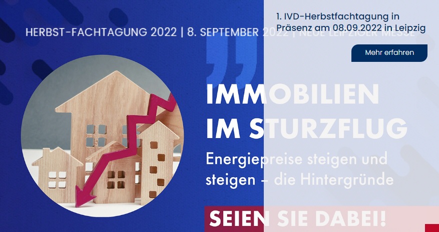 Am Donnerstag, den 08.09.2022 wird nach zweijähriger Abstinenz die Herbsttagung des IVD Mitte-Ost wieder in Leipzig als Präsenzveranstaltung durchgeführt. Die Fachtagung findet in der Neuen Leipziger Messe statt und bietet viele interessante Themen für Immobilienberater, Immobilienmakler, Hausverwalter und Sachverständigen aus Sachsen und Sachsen-Anhalt, so u.a. auch die Vorstellung des neuen IVD Preisspiegels 2022/2023. Das Programm für die Veranstaltung finden Sie hier: