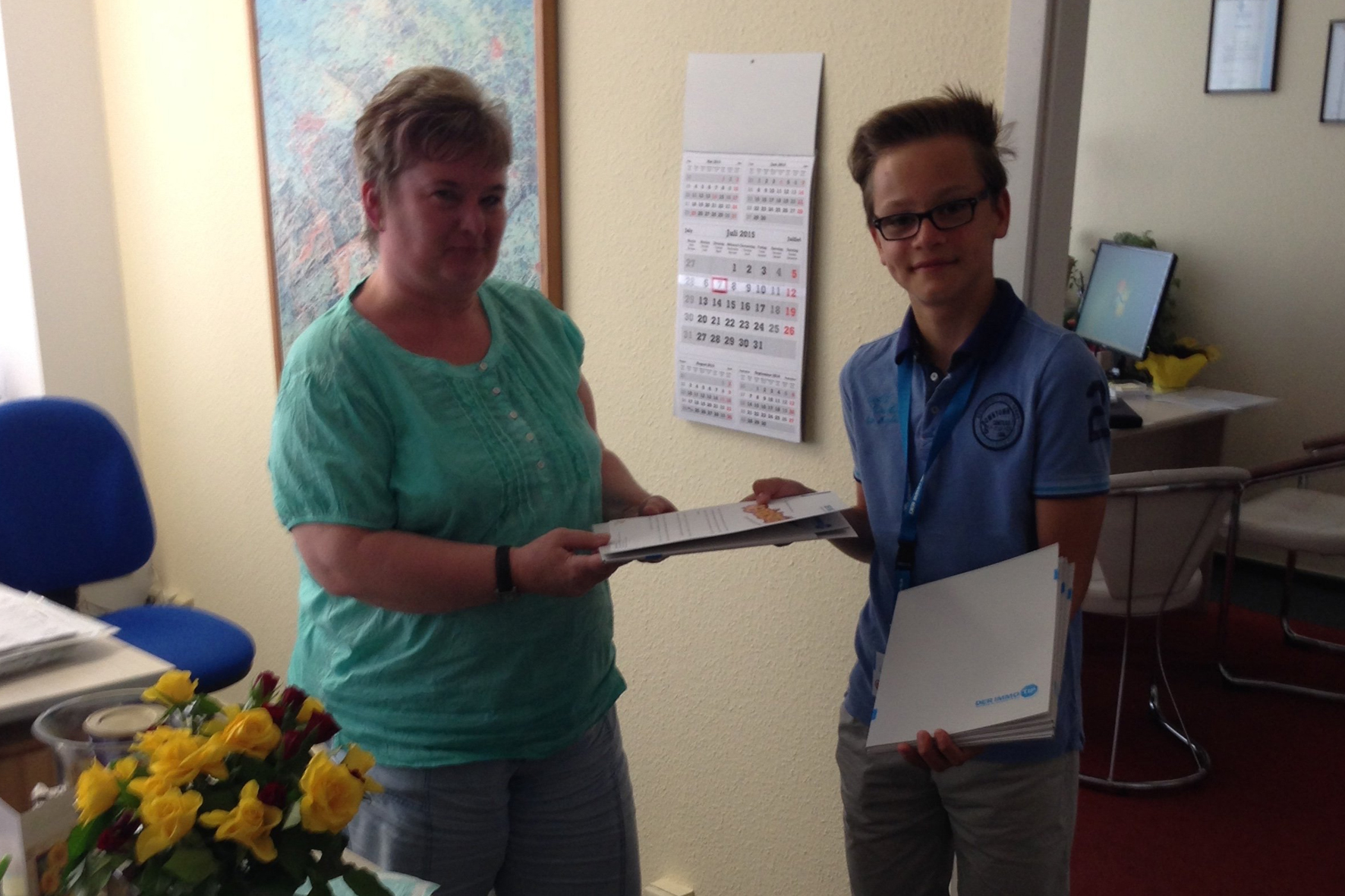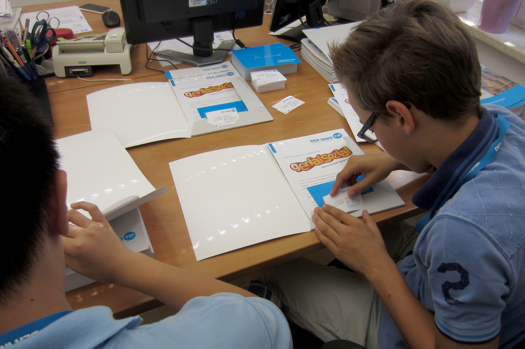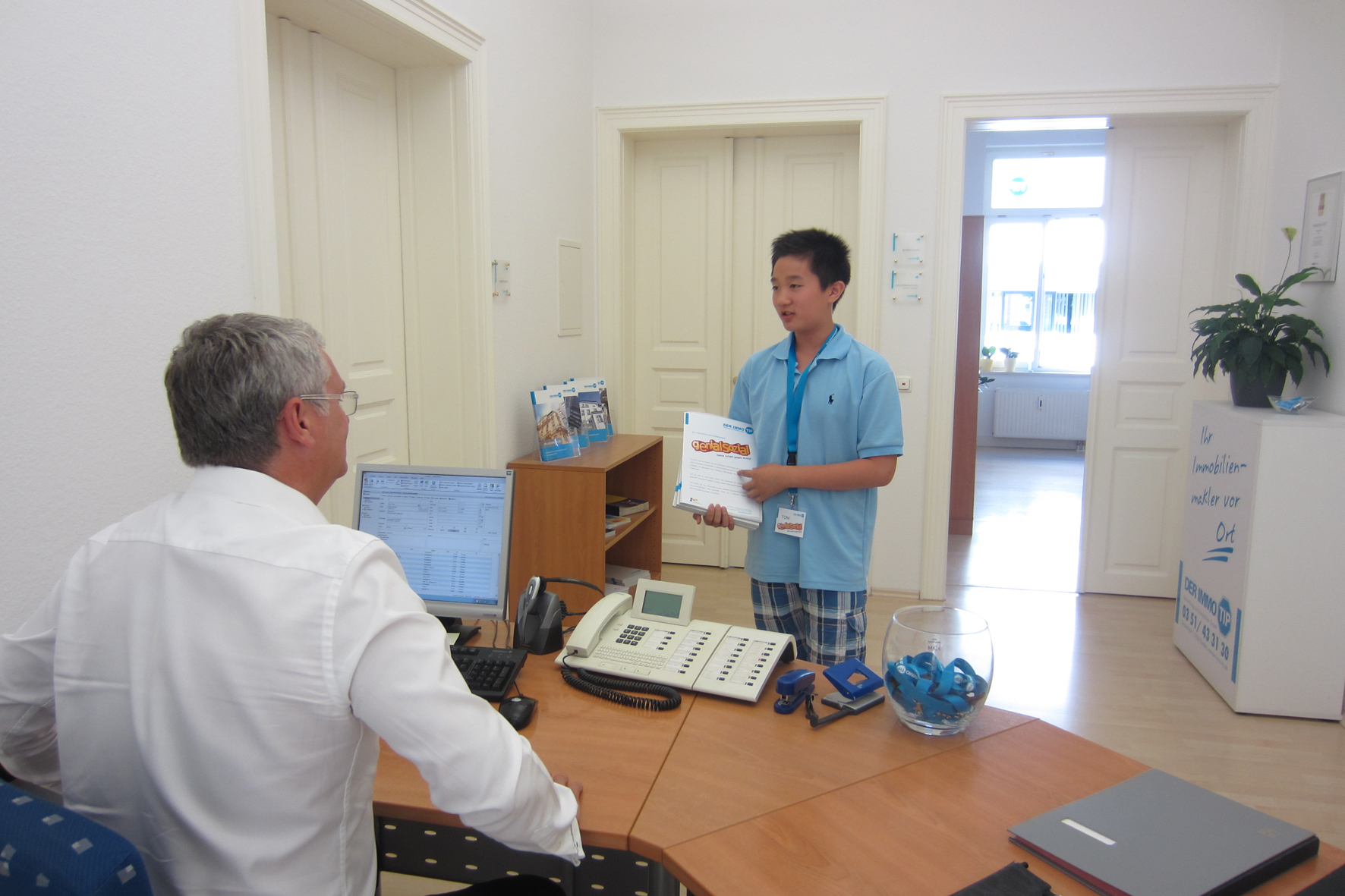 Für einen Tag im Schuljahr tauschen sächsische SchülerInnen die Schulbank gegen einen bezahlten Arbeitsplatz und erledigen in Unternehmen oder bei Privatpersonen hilfreiche Aufgaben. Und das alles für einen guten Zweck! Der Arbeitslohn der SchülerInnen wird gespendet und kommt sozialen Projekten zugute (www.genialsozial.de). Zwei Schüler der 107. Oberschule Dresden begleiteten heute im Rahmen dieses Projektes Geschäftsführer Uwe Schatz und Gewerbemakler Maik Klonowski, um 3 exklusive Angebote für Büroimmobilien in Dresden vorzustellen. Die beiden Schüler Levin und Toni durften für einen Tag von Anfang an dabei sein. Nachdem sie unsere druckfrischen Exposébroschüren sorgfältig in Mappen verpackt hatten, wurden sie kurz durch Uwe Schatz geschult. Und dann ging es gemeinsam mit dem Geschäftsführer und unserem Gewerbemakler in verschiedene Unternehmen der Stadt Dresden. Hier stellten die Kinder sich und das Projekt kurz vor und übergaben unsere Immobilienangebote. "Wir haben uns aus zweifacher Sicht für dieses Engagement entschieden" so Uwe Schatz. "Uns ist wichtig, dass Kinder die Möglichkeit erhalten, einmal einen Arbeitsalltag zu begleiten, um aktiv erste Erfahrungen sammeln zu können. Es ist eine wertvolle Kombination, dies für einen guten Zweck zu tun und somit auf Missstände in der Welt aufmerksam zu werden." DER IMMO TIP engagiert sich seit Jahren für verschiedene Kinderprojekte und unterstützt den Kinder- und Jugendsport.